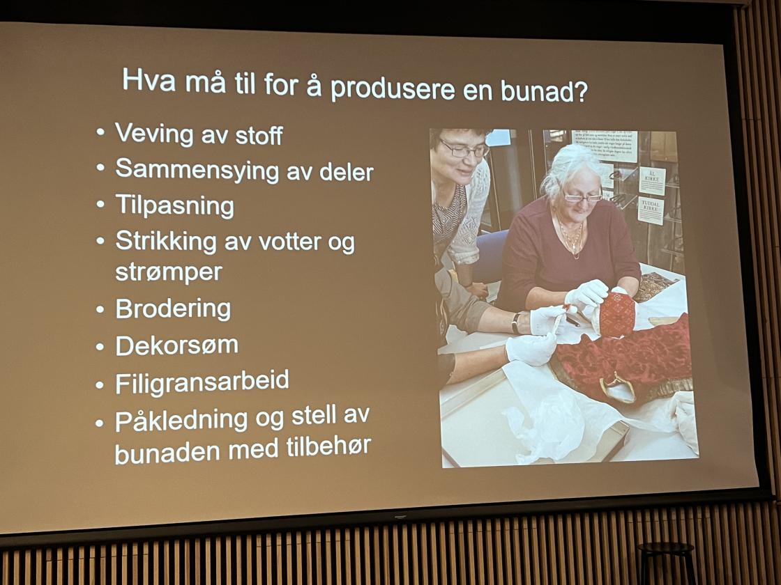 Vi fikk også foredrag om digitaltmuseum.no Hvordan de jobber for å samle gamle klær rundt om i Norge, for så å registrere disse og historien bak. Viktig å vite hvordan de brukte For eks Bunaden, hvordan den er sammensatt, hvilke deler som hører sammen osv.
