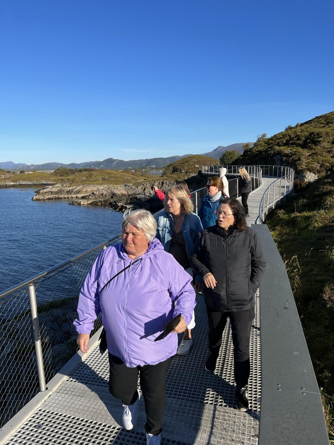 Turen gikk videre over Atlanterhavsveien, en fantastisk perle. Vi gikk også sveve stien, til stor glede for de vi hadde med oss. Solen skinte og vinden hadde pause, så de var helt overveldet over naturen vår.