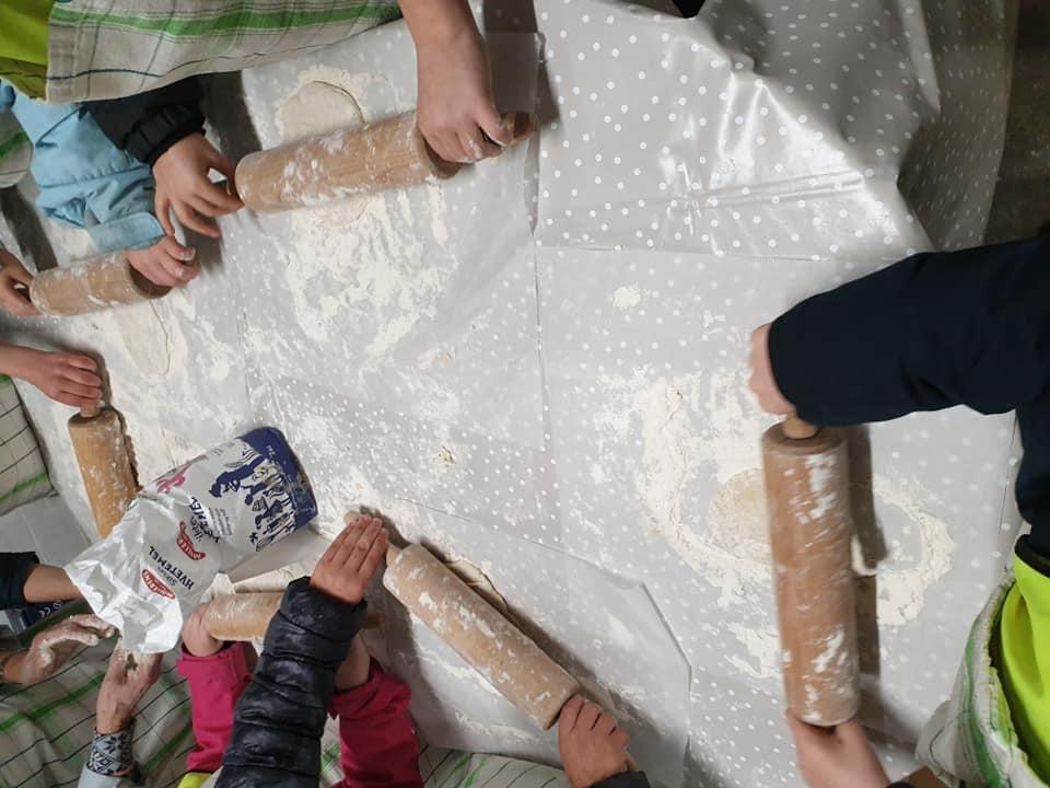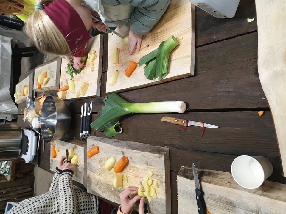 Vi laget potetlomper og grønnsaksuppe, sammen med barna.