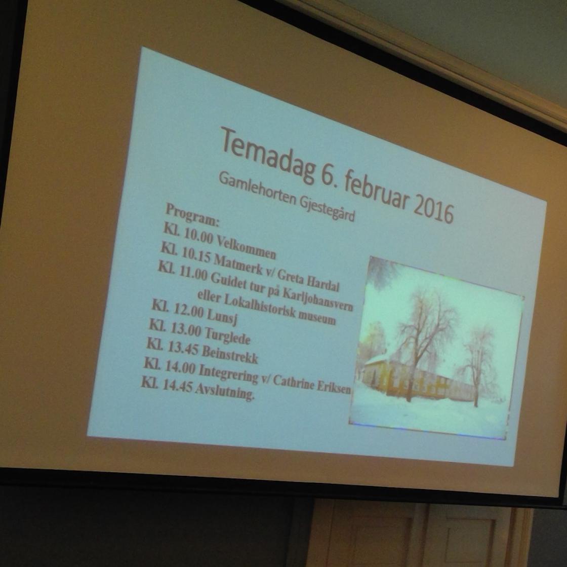 Vi avsluttet dagen med inspirerende informasjon fra Leder for frivilligsentralen i Horten Cathrine Eriksen. Hun fortalte om hvordan frivillige organisasjoner og enkeltpersoner hadde bidratt i arbeidet med transittmottak for flyktninger.