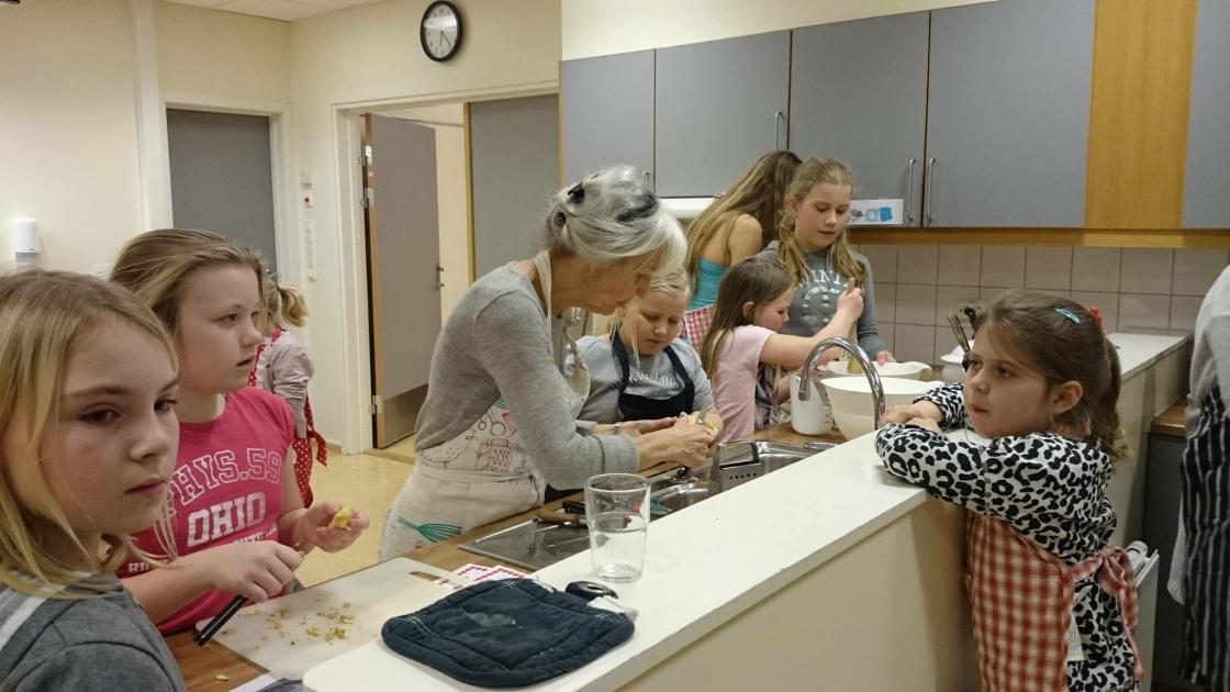 Vi støtter spesielt barn og unge i bygda, vi inviterer til skolelunsj, matlagingskurs og strikkeopplæring.