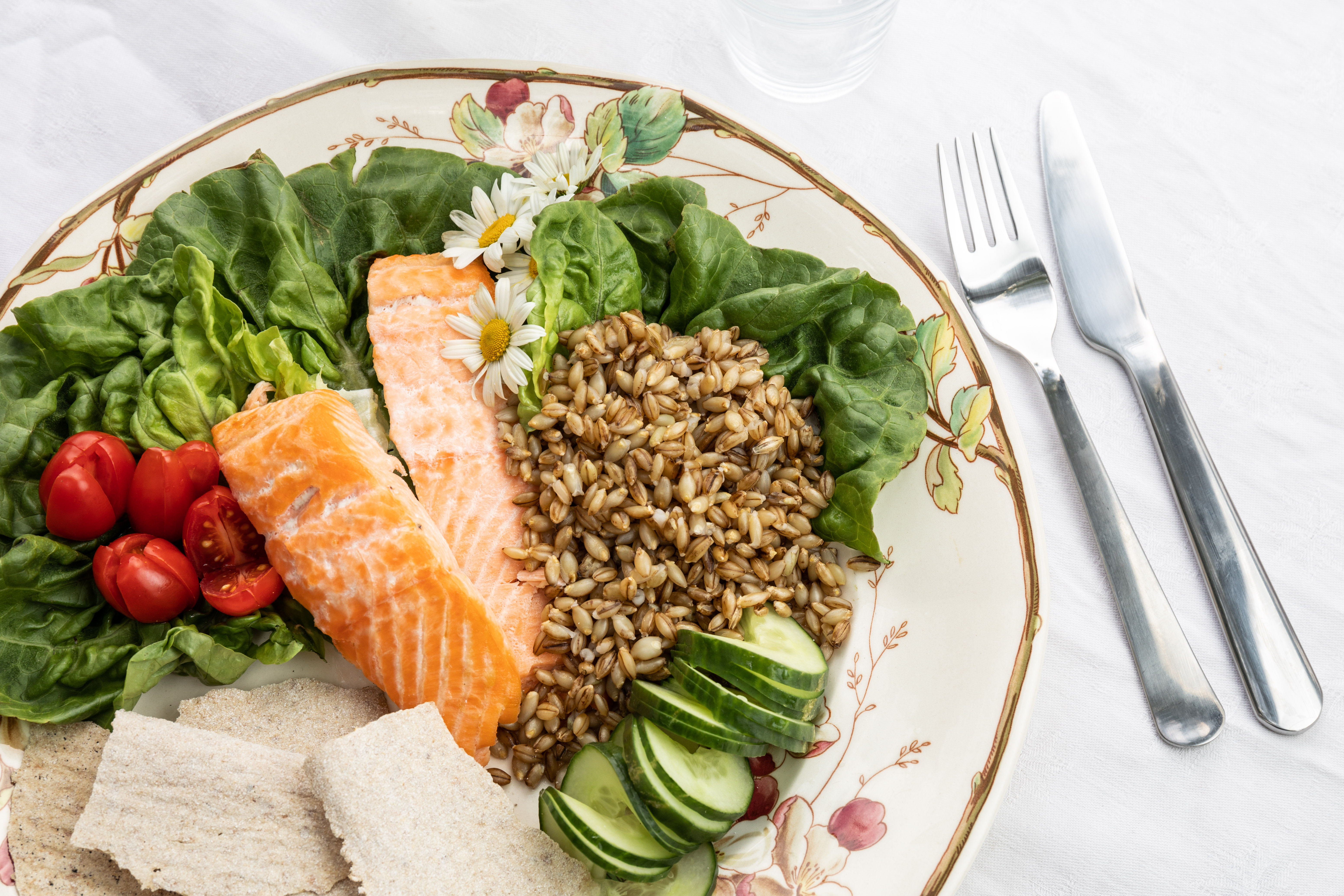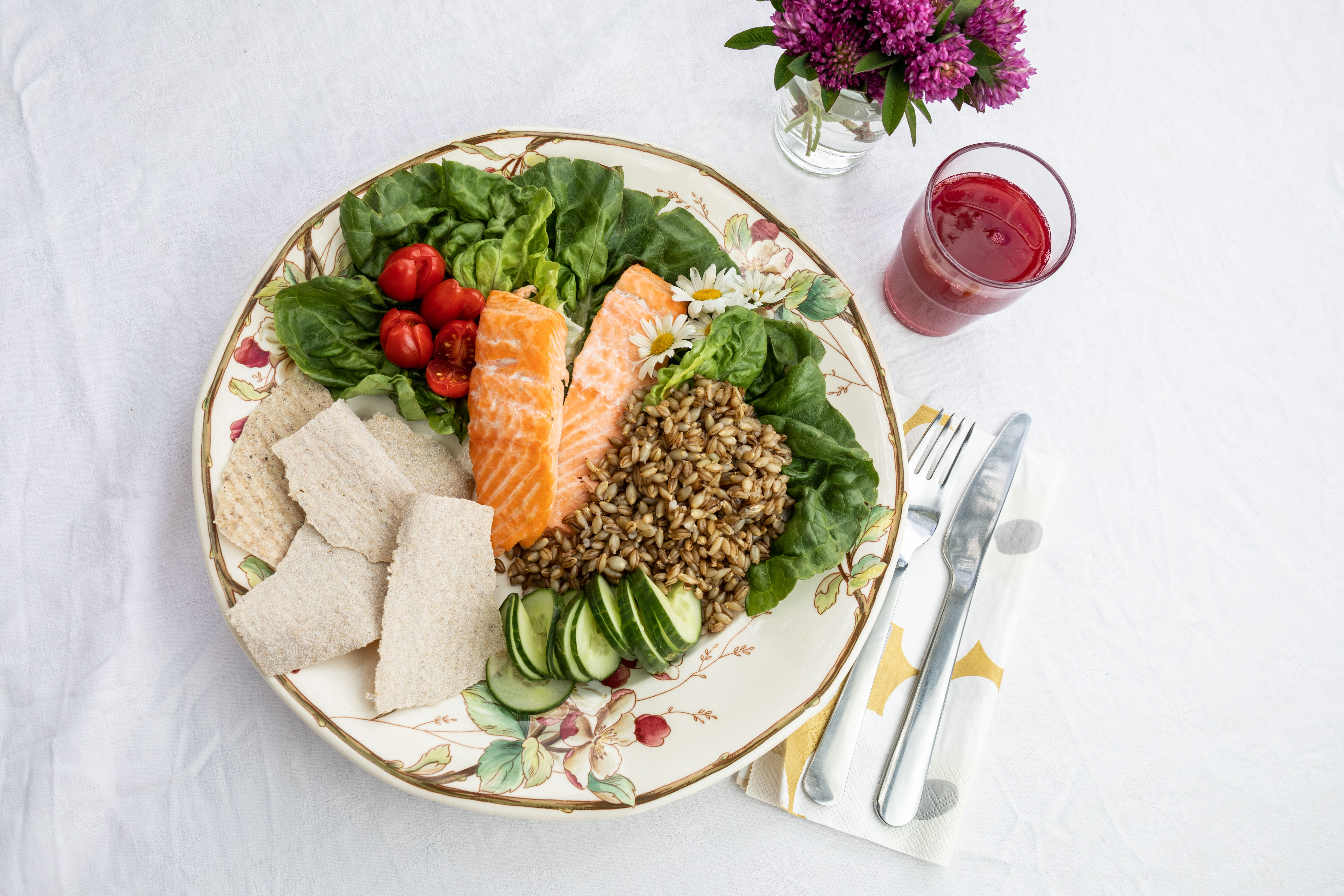 Stekt laks med byggryn er hentet fra bygdekvinnelagets brosjyre: Spis norsk bygg - oppskriftshefte Vi testet også ut den samme retten med å bytte ut laks med elgkarbonader.