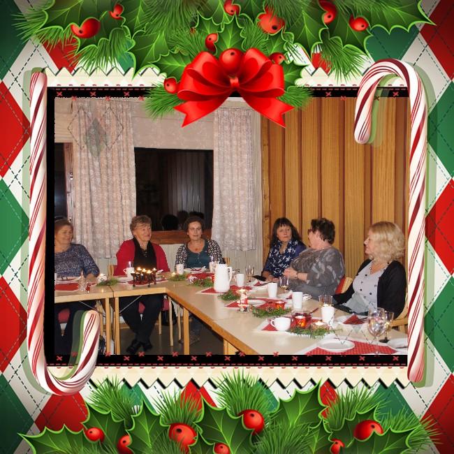 20 var samlet til julemiddag. Det har blitt en flott tradisjon at vi samles rundt middagsbordet på siste møte før jul. Det sosiale står i fokus denne kvelden, men litt underholdning må til. Kirsten Landsverk leste to innslag fra avisa om gamle øl-tradisjoner og julebad. Reidun Ragnhildrød leste et stykke skrevet av Luis Jacoby som handlet om julehilsen før og nå. Og så var det pakkeutdeling. Det foregår på den måten at vi alle har med en gave som blir nummeret, og så blir det delt ut lapper med nummer på til hver og en, slik at alle får hver sin pakke.