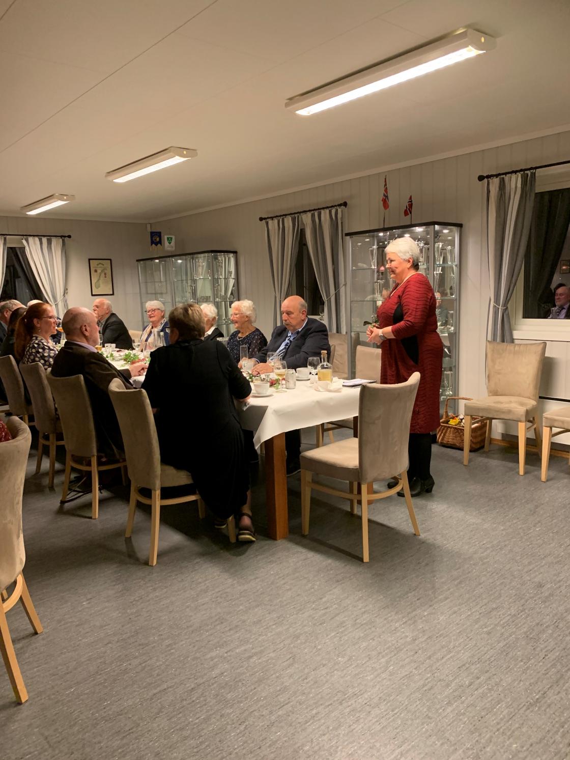 Leder May Gunn Horntvedt ønsket 50 festpyntet gjester velkommen og ledet oss fint gjennom kvelden.