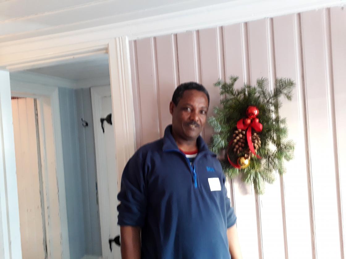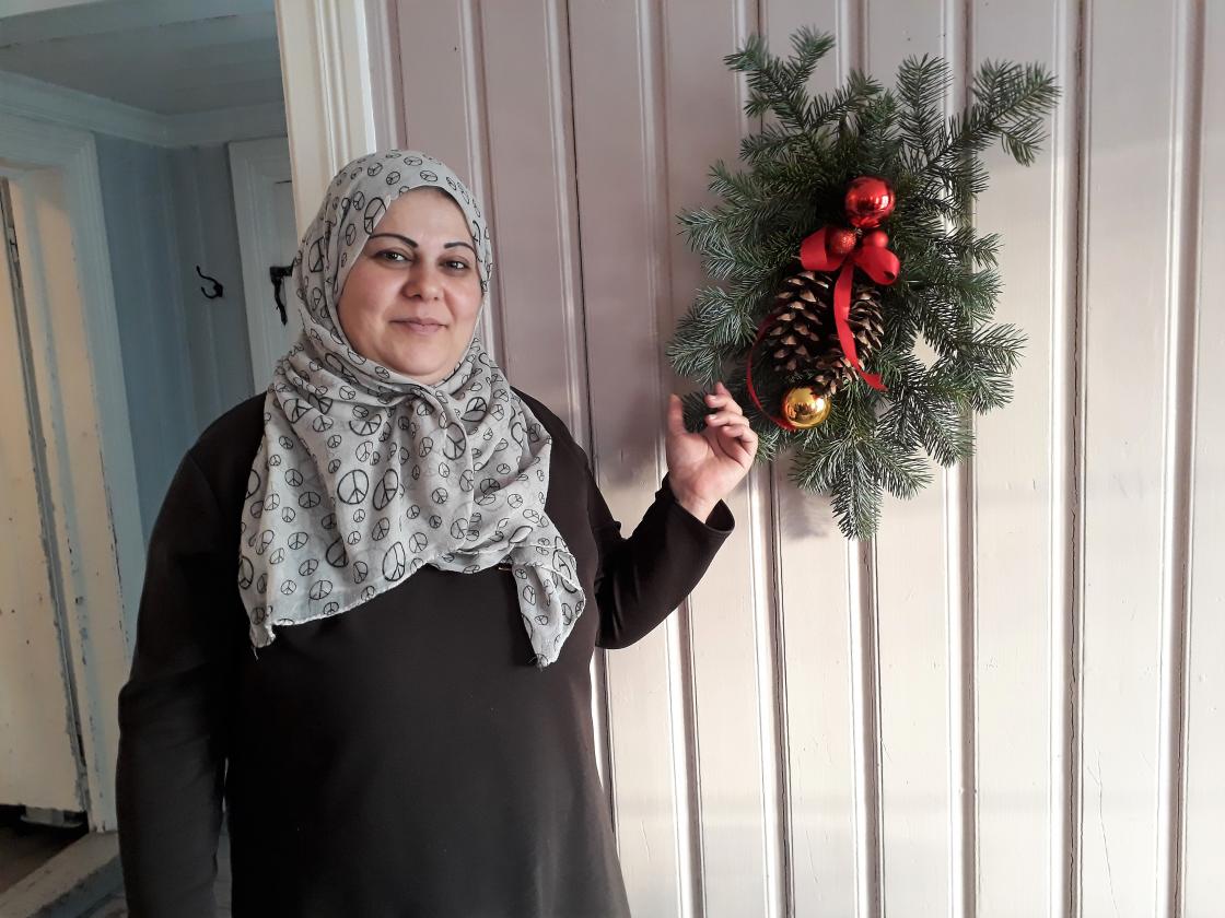 Mandag 10. desember kl. 8.30 hentet vi seks fra innvandrergruppen vår til juleaktiviteter på Bryggerhuset. Tre kvinner og tre menn skulle bake Berlinerkranser og lage dørpynt.I tillegg til fire entusiastiske bygdekvinner var lærer Karen med og Rose blomsterbinder var instruktør og hjalp oss med dørpynten.Gruppen vi har hatt kontakt med er positive, interesserte og aktive personer som det er trivelig å være sammen med. De fleste kan foreløpig ikke så mye norsk, men vi merker at ordforrådet blir bedre for hver gang vi møtes, og det er flott å oppleve.Stort sett klarer vi å komme til en felles forståelse ved å benytte alle former for kommunikasjon.