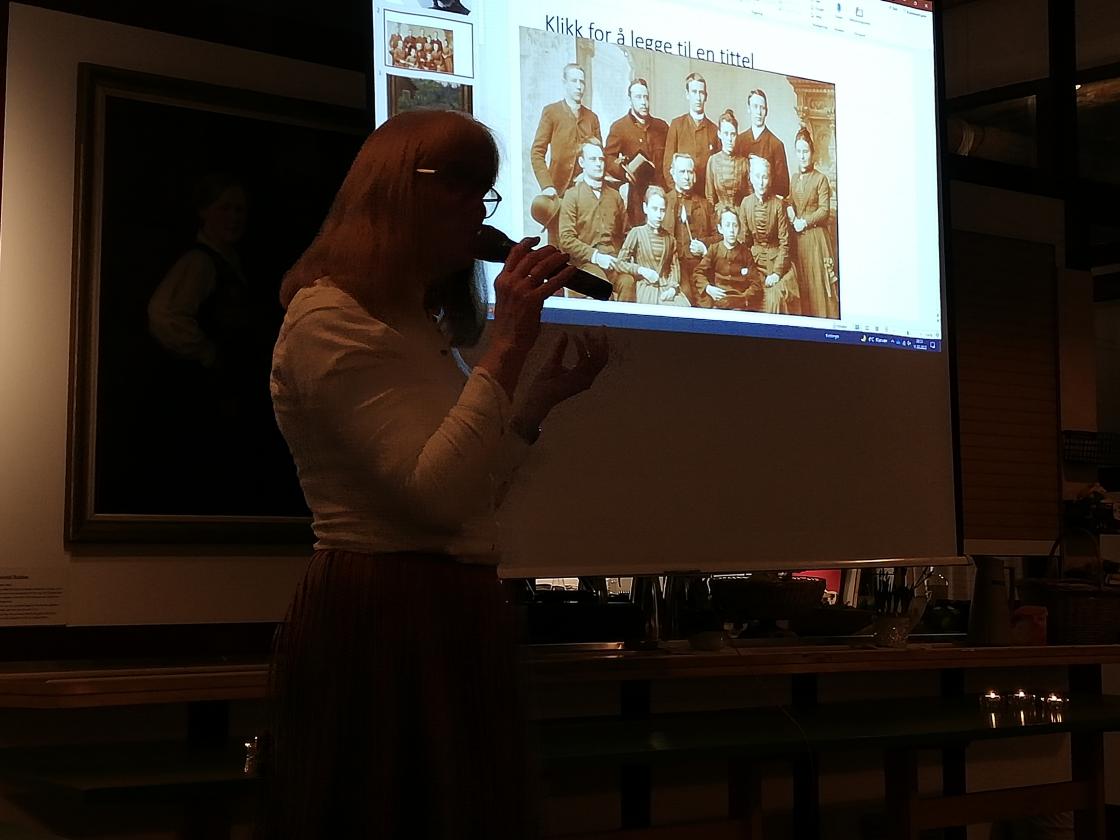 Ekteparet Skjulestad hadde viktige oppgaver denne kvelden, men dessverre krevde coronaen sitt , så vår leder Yvonne lå hjemme syk. Ivar som skulle holde et kåseri om seilskutetiden på sørlandet, måtte og ville bli hjemme for å ta seg av sin covidsyke kone. God bedring til henne, hun var savnet! Unni, vår dyktige sekretær, tok over regien så alt gikk strålende tross alt. Fru museumsbestyrer, Fredrikke, steppet inn der og da med et kåseri om Hulda Valstad! Veldig morsomt å lære mer om Hulda også, spesielt passet det bra siden vi var på museet, hennes hjem i mange år!