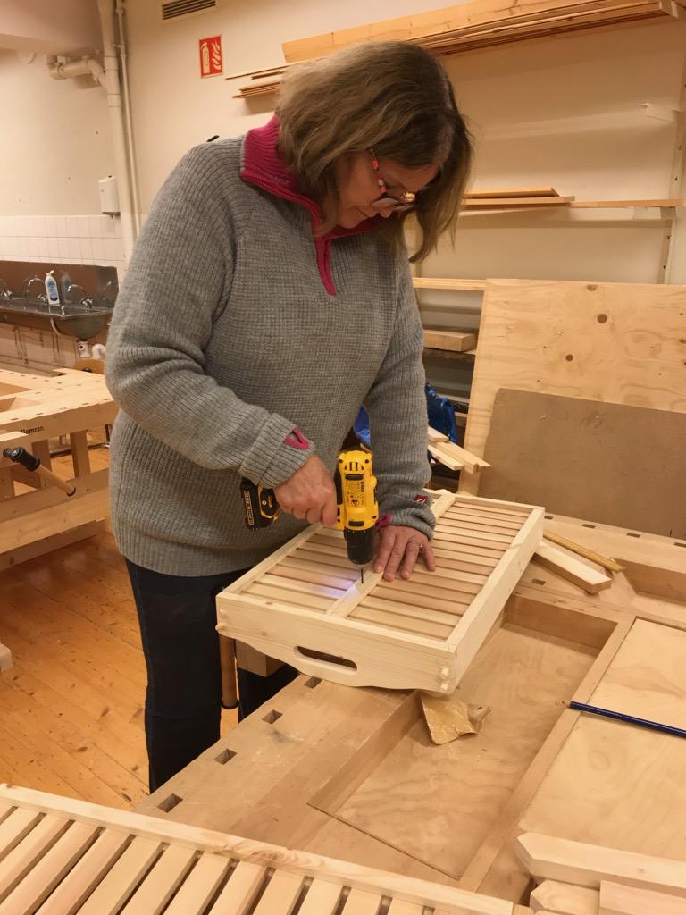 Inspirert av et vellykket kurs våren 2019 startet vi et nytt kurs i fjor høst. Antall deltakere var 8, flere av dem hadde vært med på det første kurset. Kurset skulle egentlig gå over fem kvelder, men deltakerne syntes det var så gøy, og læreren var så grei at det ble to ekstra snekkerkvelder.