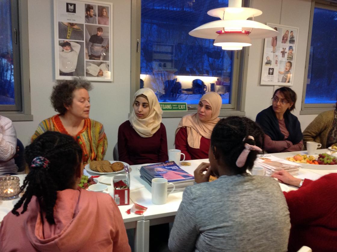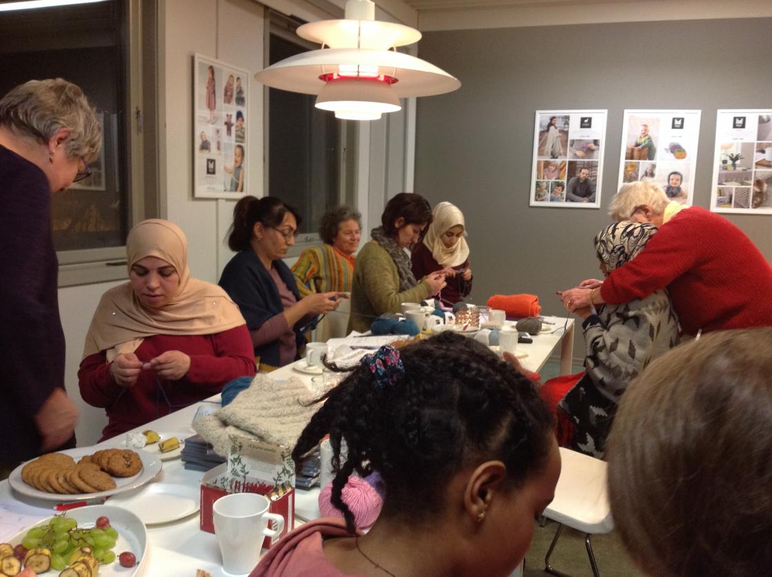 En fin kveld med erfarene strikkere som øste av sin kunnskap. Og ikke minst nye bekjentskaper skapes blant kvinner.