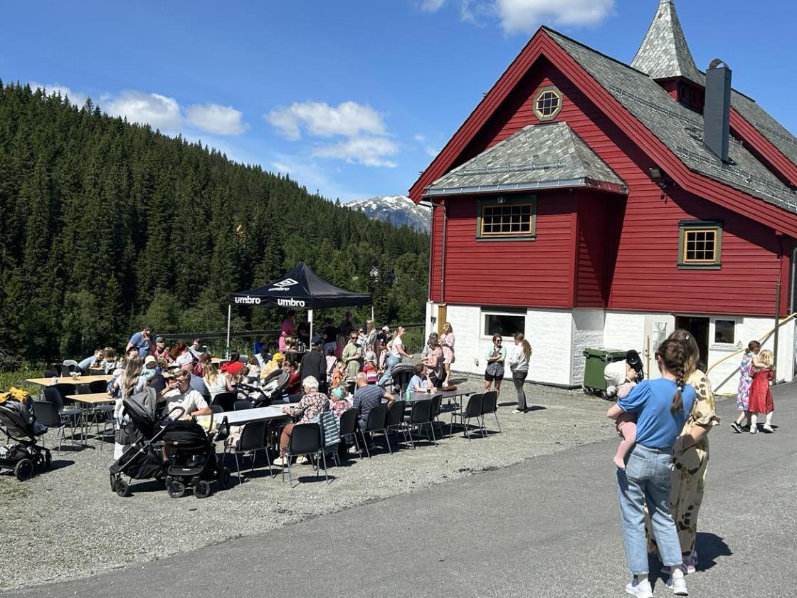 Båe gamle og unge hadde teke turen i Solheim denne dagen og fekk ei triveleg stund i sola med toradarmusikk, leikar for borna og god drøs over nysteikte lappar, kaker, kaffi og heimelaga saft.