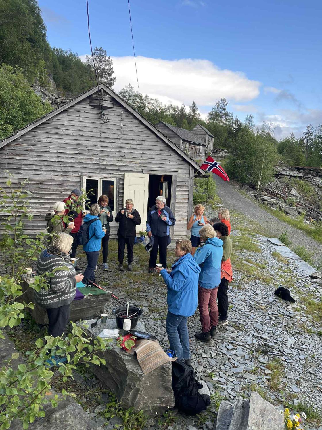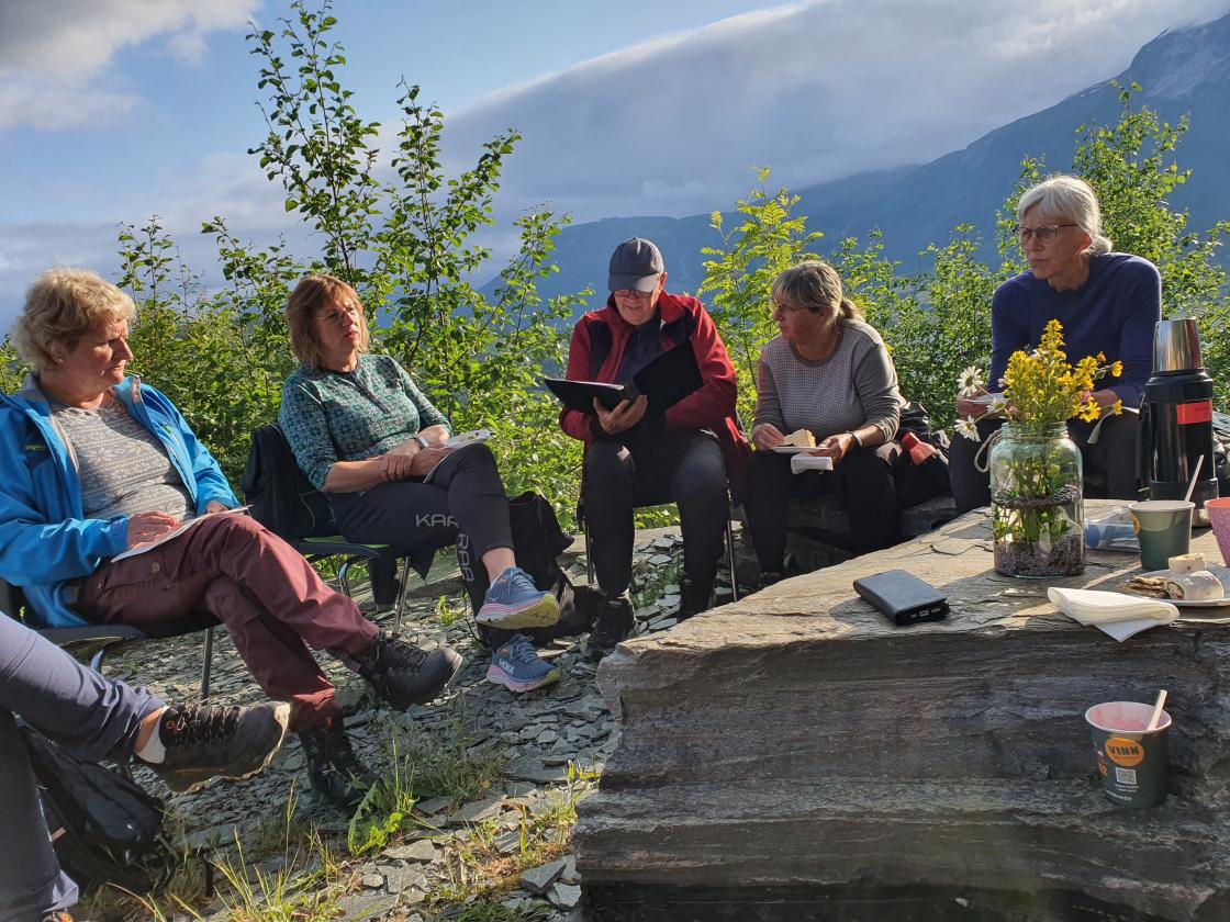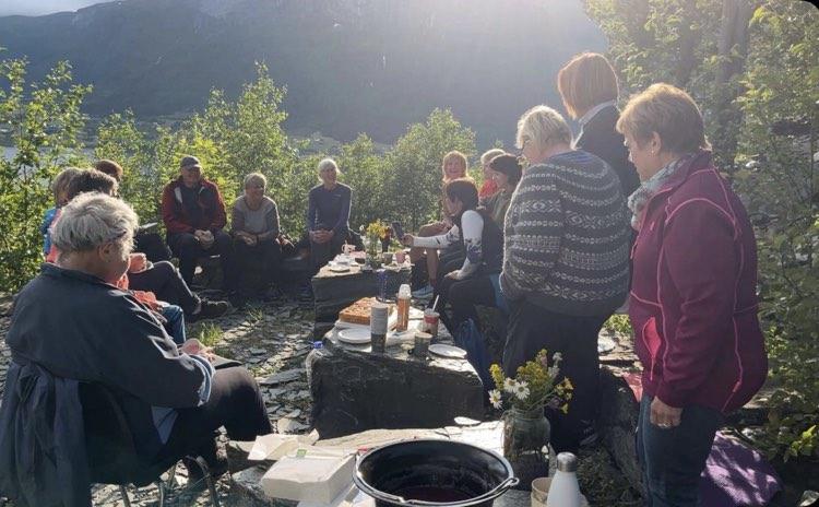 Tysdag 17.juni var siste kveldsturen for denne sesongen (kjem fleire turar til hausten). På tross av dårleg vervarsel fekk me, som tok turen til Hedleberget, ein eventyrleg kveld med kulturvandring, matservering i det fri og kulturhistorie frå Hedleberget. På førehand fekk me leiga Songvehytta grunna fare for vind og regn, men sola titta etter kvart fram bak skyene, slik at me kunne sitta ute og nyta sommarkvelden.