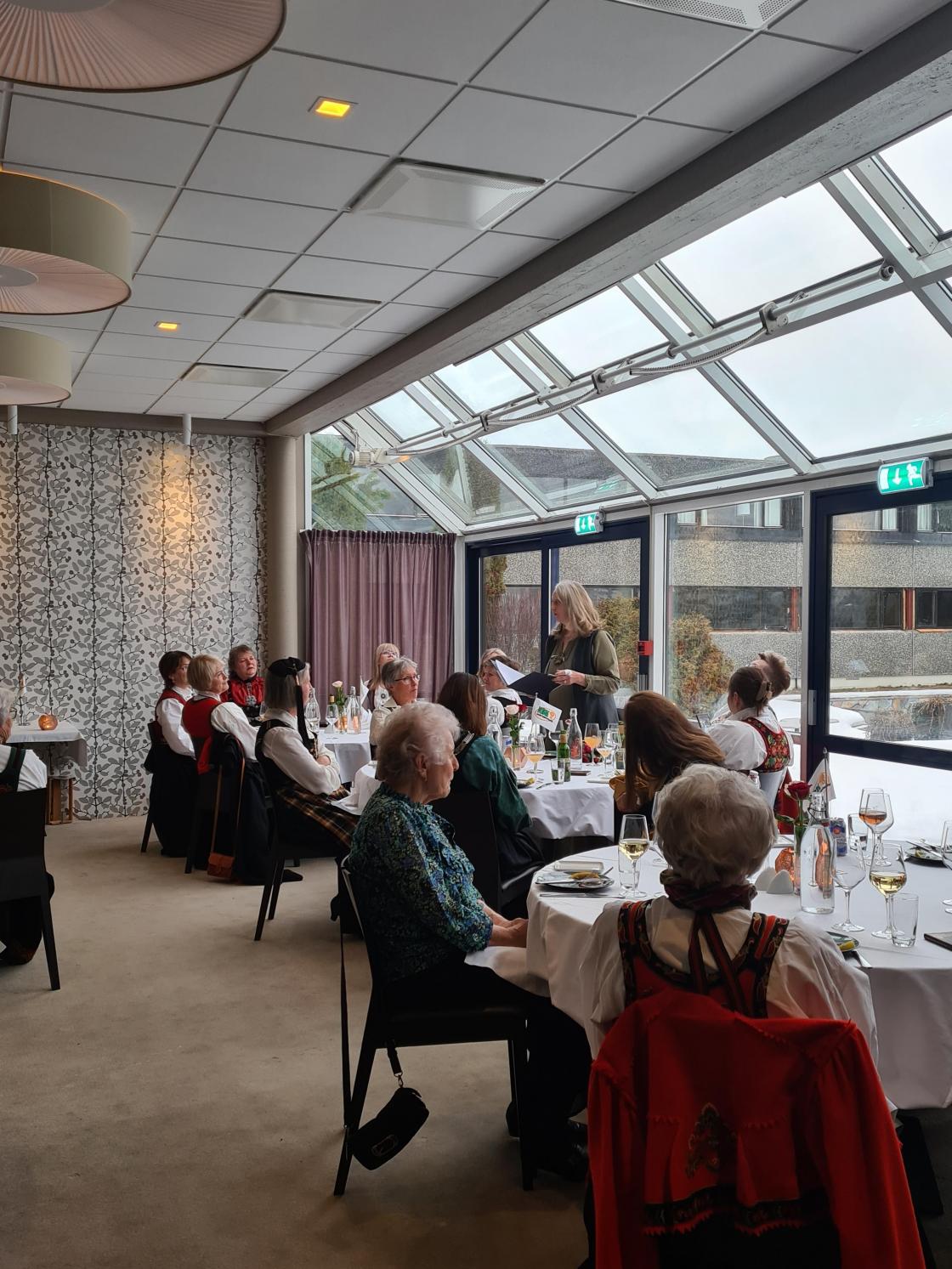 Skjorta er stryket og bunadsølet ligger klart, nå skal bunaden på. For når laget fyller 90+2 år da skal det feirast. Og stas blei det, med bunader frå fleire plasser i Norge også en frå Island. Dette var morosamt å sjå. Jubileume blei avhold på Bø Hotell der vi fikk to retters middag, for desserten hoppet vi over. Vi hadde et kakebord i steden. For vi regnet med at vi kommer til å bli gode og mette. Og det hadde vi rett i.