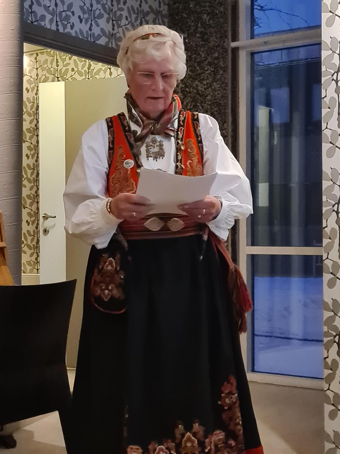Det er ikkje vær dag en får en rose og et dikt, med det stopper ikkje hær. Åste Ulvenes tok oss med i en reise i tid. Der ho fortalte litt om historia til Bø Bygdekvinnelag. Helga Eika leste frå avisa Samhug, som er en avis som blei handskrive av medlemer i da Bø Bondekvinnelag som vart staret i 1931. Og skal si at latteren satt godt, for de skrev på rim og de hadde en god humor. Så håper på å få hørt meir frå Samhug.