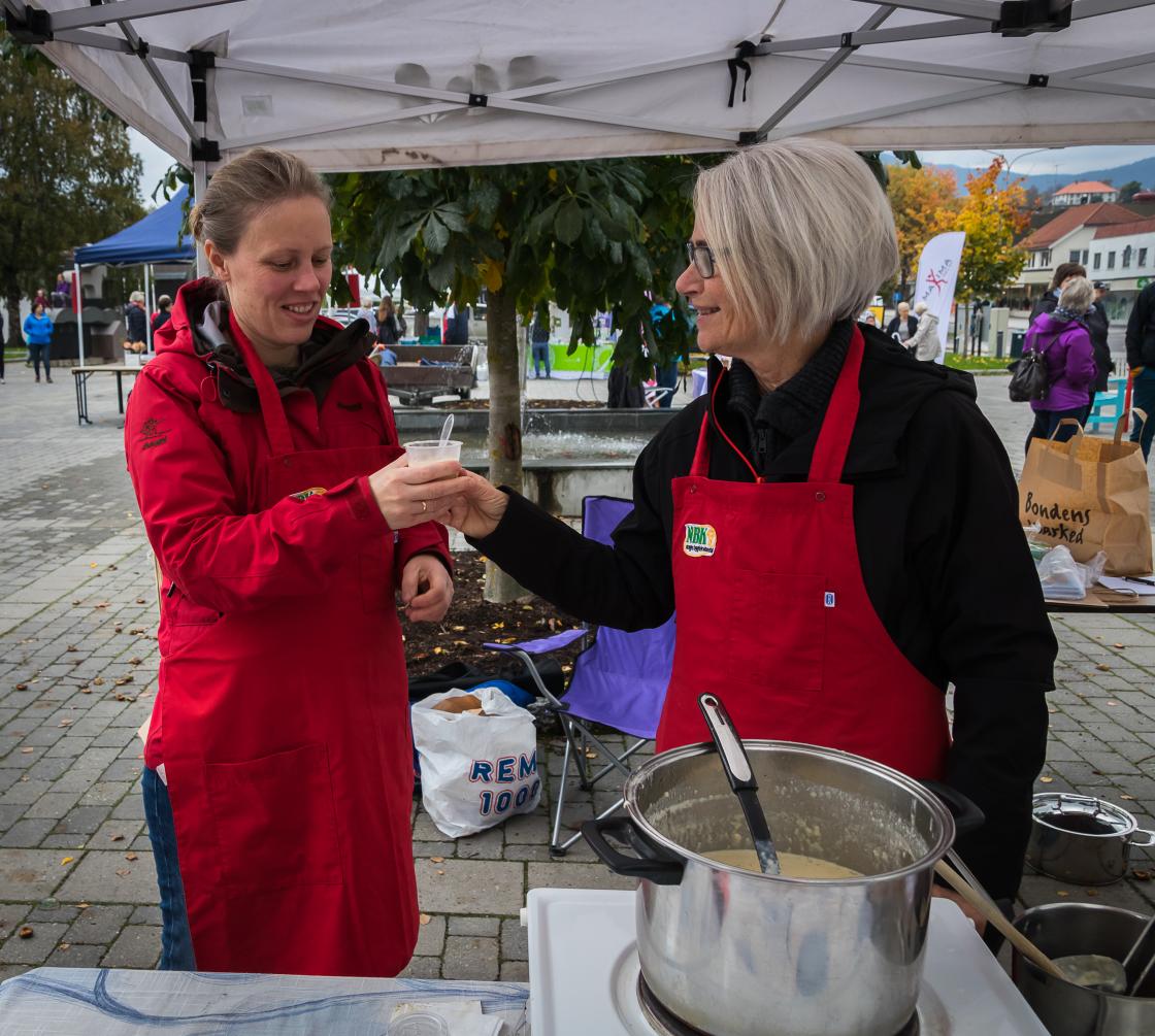 Denne laurdagen var vi igjen samla til haustmaknad på Bøtorget Bø Bygdekvinnelag varta opp med Kjærlighetssupe med løpstikke, dela ut samksprøver, fekk god tilbakemelding. Oppskrift på suppa fekk dei med. Ellers reklamera vi for laget vårt med brosjyrer av ulike slag. Hadde og noko baksteutstyr til salg, vi skal jo ha kurs i kling- og lefsebaking til hausten. Fin dag med opphaldsvær heile dagen.