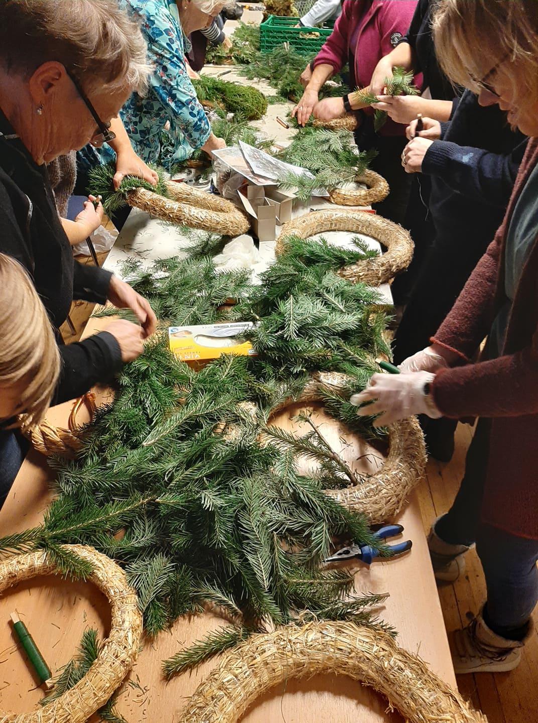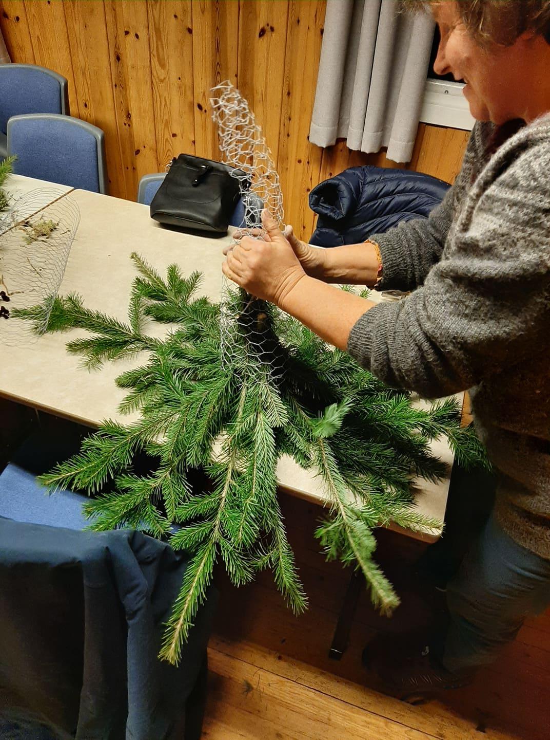 Det var 26 kreative damer møtte opp til en kjekt kveld. Hær skulle det lages mosenisser og kranser. Noen ønska å lage en av delene og andre rakk å lage begge. Det var Rønnaug som viste hvordan en skulle lage kranser og Bente vise oss hvordan vi laga mosenisse. Praten stod i mens det beli laget mange flotte kranser og nisser. Vi avslutta kvelden med risgrøt og rømmegrøt, spekemat og saft. Og loddsalg følte med.