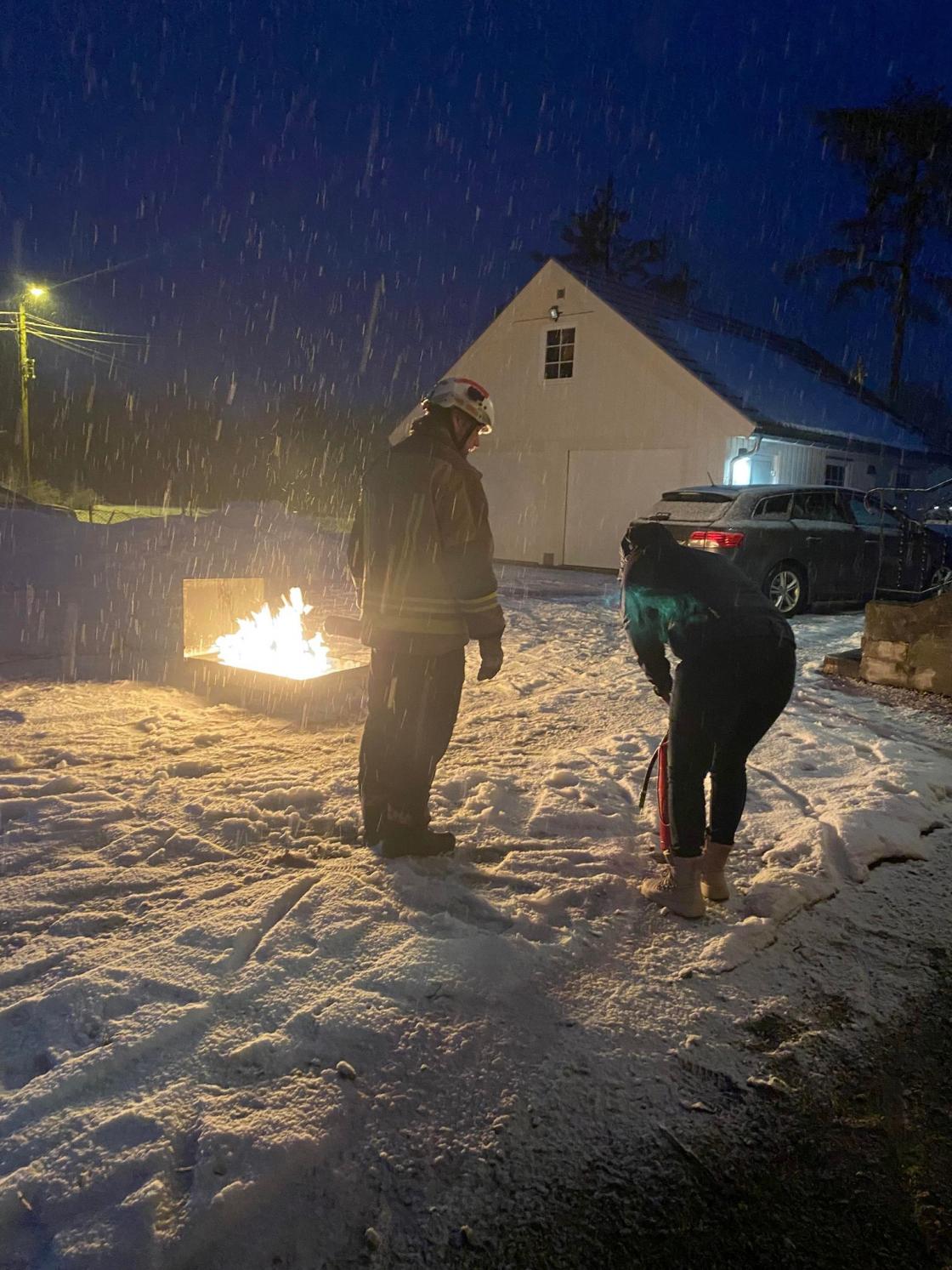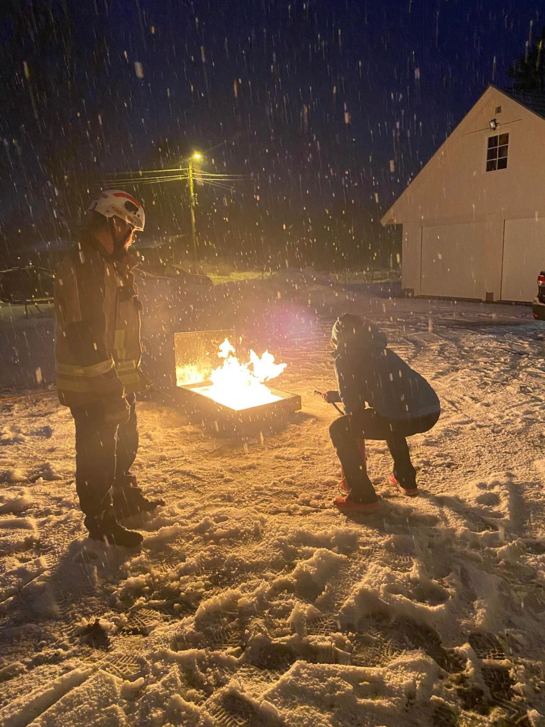 Når det brenner er det viktig å vite hva en skal gjøre, og det fikk vi lært den 21. mars, For da kom noen kjekke brannfolk og lærte kan.