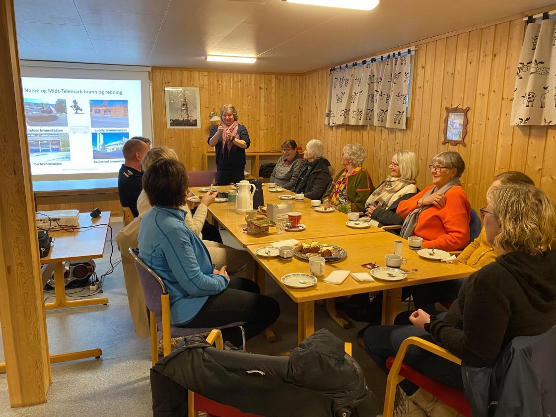 Hva gjør en vis det brenner? Dette er noe mange burde ha litt kunnskap om. Selv om det er liten eller stor brann. Vi i Bygdekvinnelaget vil at alle skal få den kunnskapen så vi hadde et lite kurs i hva en skulle gjøre. Vi fikk Nome og Midt- telemark brann- og redningstjeneste til å hjelpe kån. Hær skulle det både bli teori og slukking av flammer.