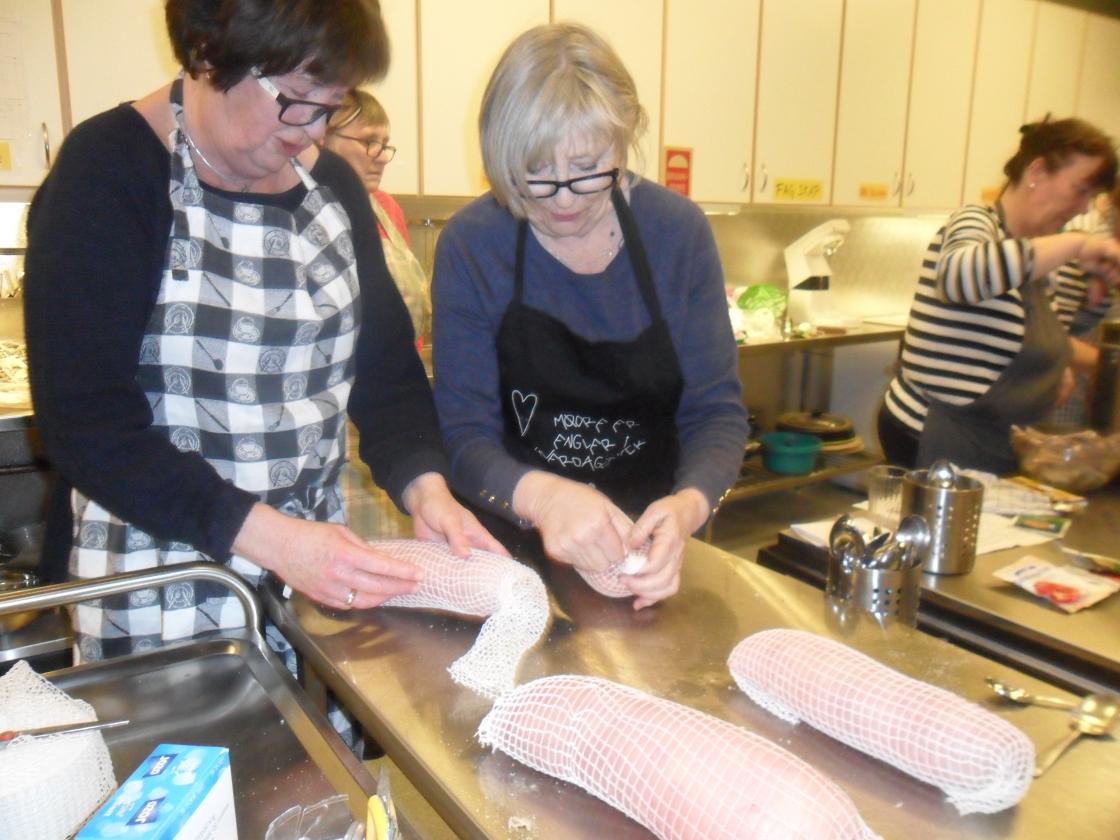 Med hjelp av Hege Glad ble det laget 12 lammeruller på Kvernhuset ungdomsskole i kveld. Det ble kokt kraft på ribbeina, og med grønnsaker oppi ble det en skikkelig kosestund med suppe når vi var ferdige. Vi gleder oss til deilig pålegg til påske!