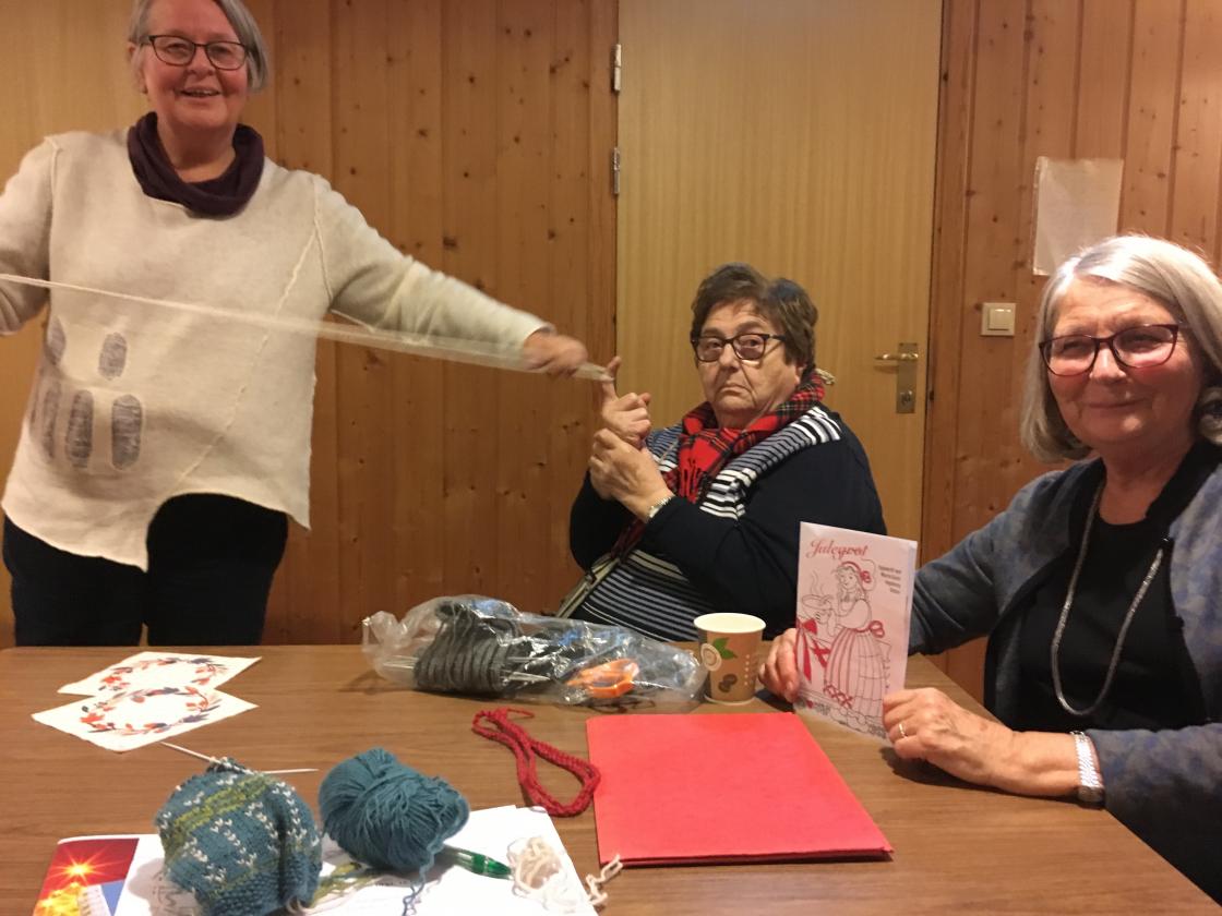 Vi forbereder til Julemarked på Grinakervev om dagen,og har morsomme, kreative aktivitetskvelder på Bergslia. Det produseres fine vinvesker i godt driv; symaskinen går og snorer tvinnes med stor iherdighet!
