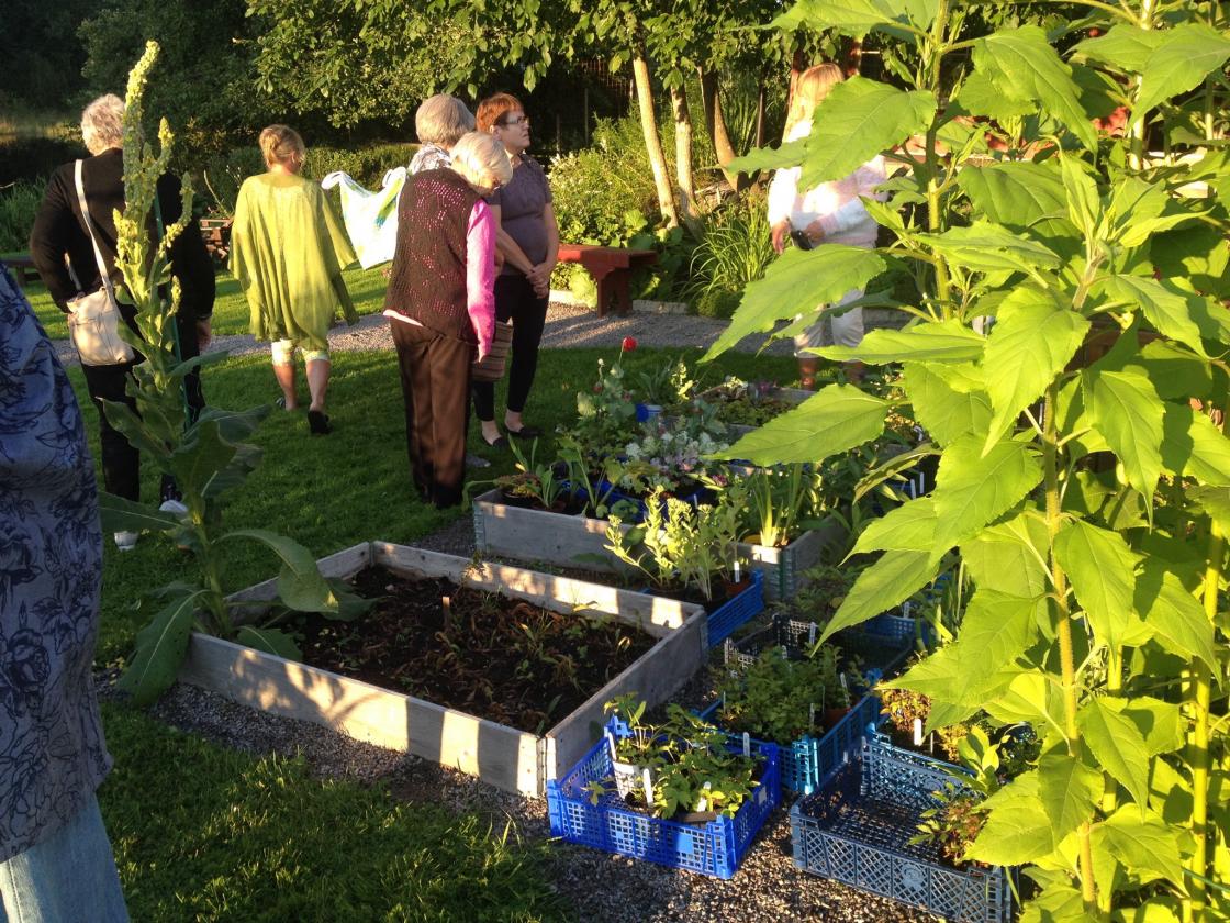 Vi ble invitert til Bente og Terje på Østgård ved Mølledammen. De har opparbeidet seg en kjempefin hage med mange fine planter/blomster og med detaljer som gjør at hagen blir et syn for øyet. Mange medlemmer møtte opp denne kvelden for å beskue den fine hagen og alle de forskjellige plantene. Det var også muligheter for å få med stauder hjem for de som ønsket det.