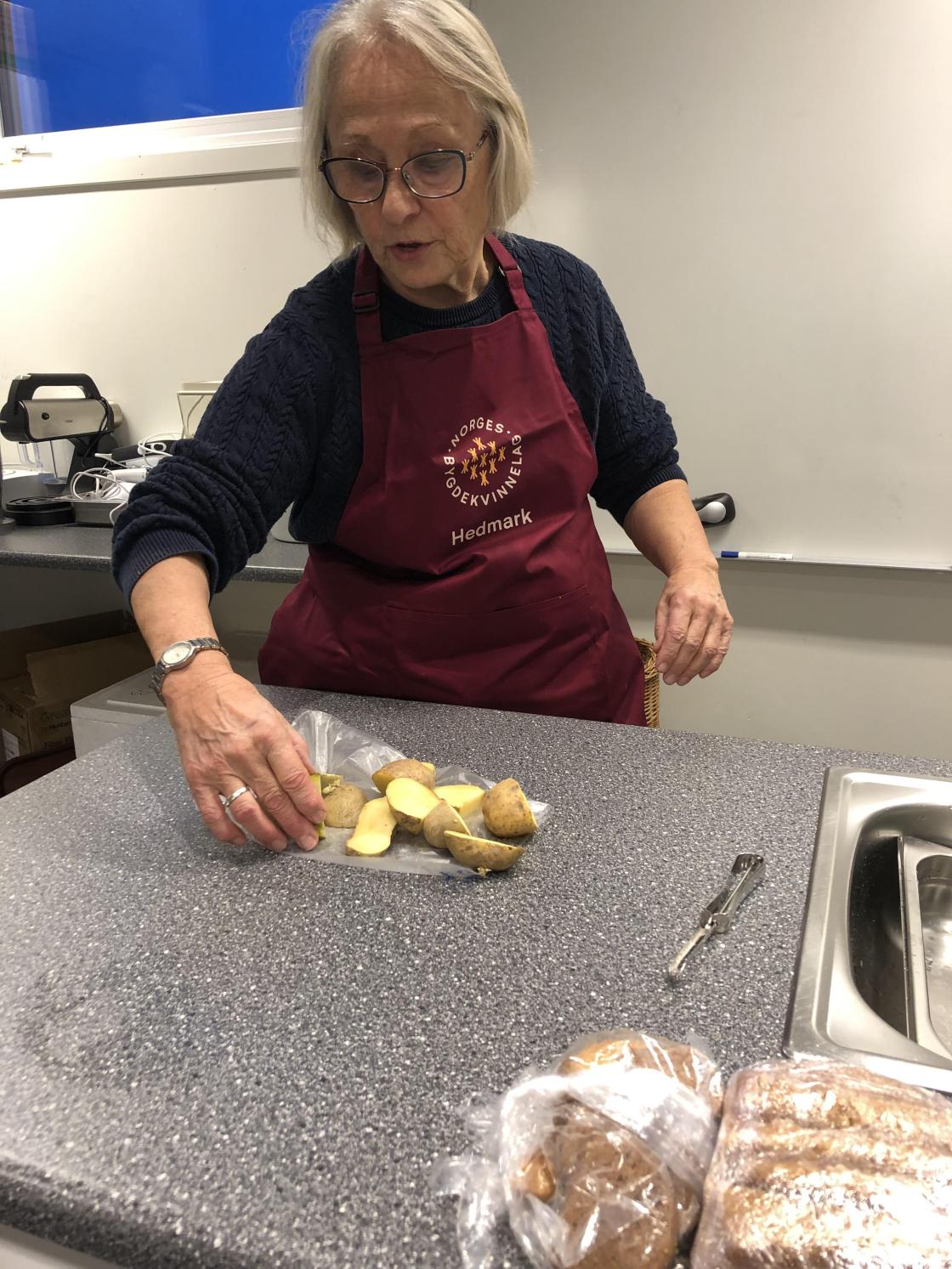 Margith startet med å gi elevene en innføring i forskjellige potetsorter; at noen er matpotet og andre er industripotet. Hun fortalte også at poteter som er grønne er giftige. Det hadde ikke de som deltok på kurset hørt før.