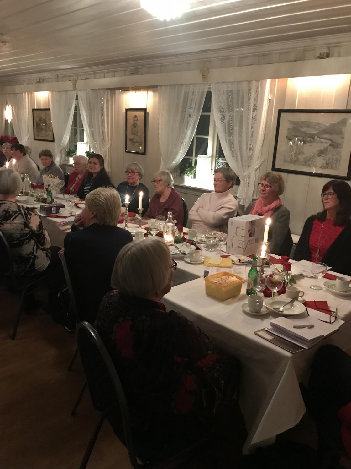 Denne kvelden fikk vi servert deilig lutefisk med tilbehør og dessert + kaffe. Praten gikk livlig rundt bordet. Det ble et koselig avbrekk i julestria. Etter maten var det loddsalg, og alle "årene" gikk unna i en fei. Mange fine gevinster ble delt ut.