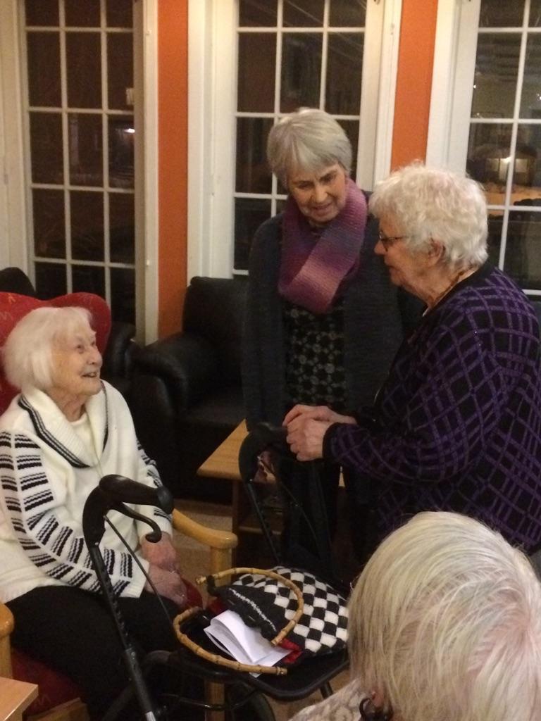 Januarmøtet ble lagt til Holt HDO på Kongsvinger. Der bor vårt eldste medlem, Kari Jahr, som er 96 år. Hun er glad i å strikke og er en flink kontstrikkerske.