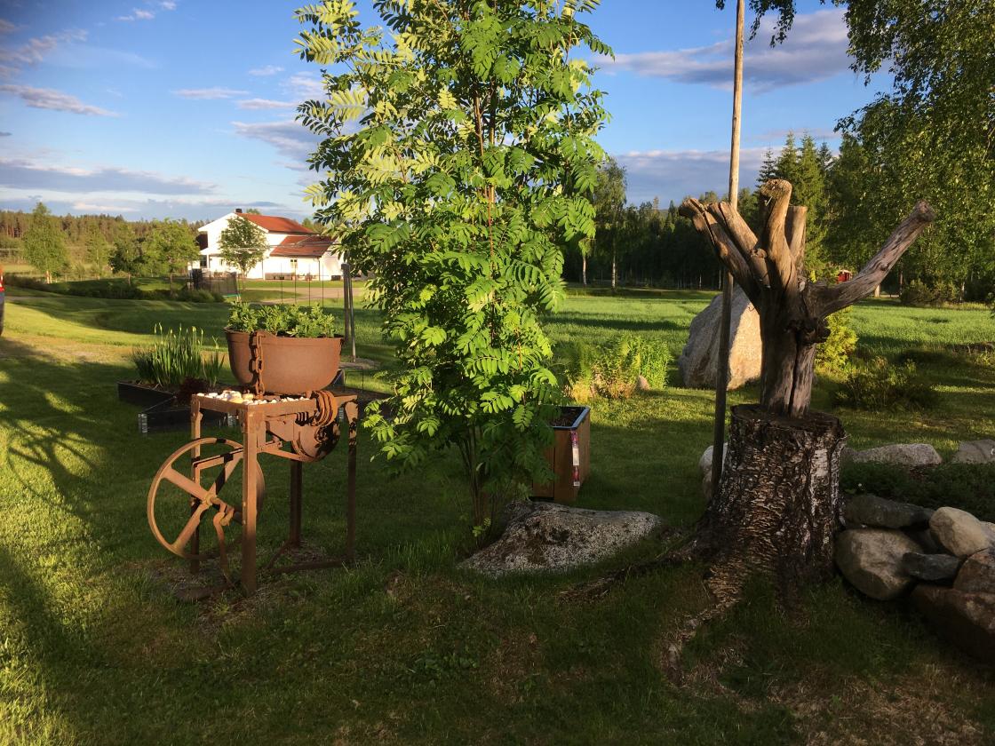 Elisabeth og Martin har laget seg en fin uteplass og hage i tilknytning til sommerfjøset. Vi var heldige med været så vi kunne sitte ute å nyte den fine plassen.