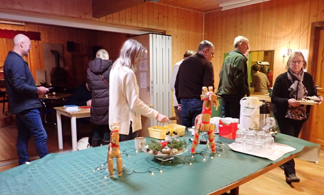 Ungdomslaget hadde juleverkstedet. Grendelaget sjaua, pynta og laga en fin ramme om det hele.