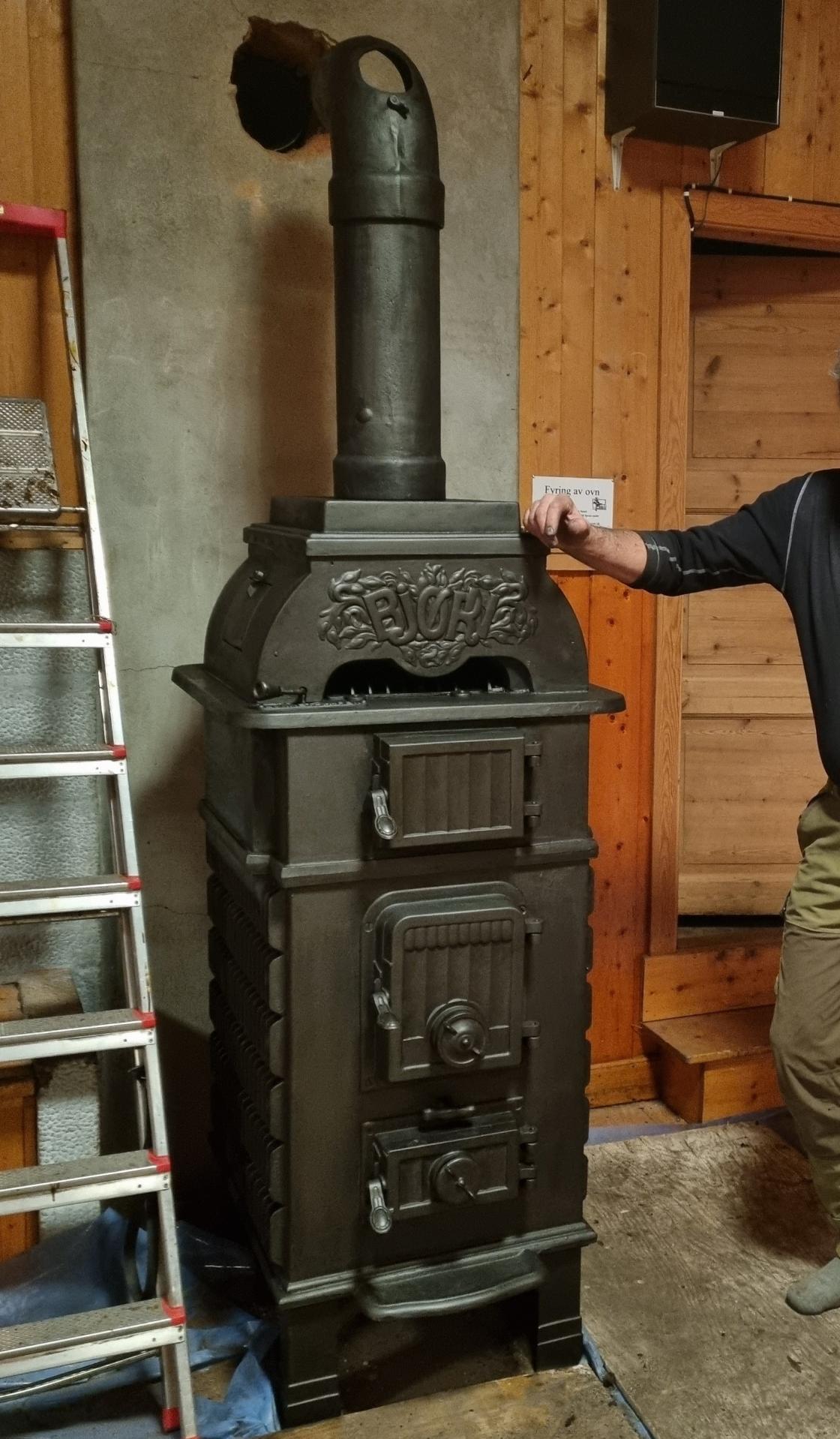 I 2023 var status fyringsforbud i ovn og pipe, og slik hadde det vært noen år. De skyhøye strømprisene forsterka tankene om å kunne bruke ovnen fortsatt. Det ble søkt om penger ; Nore og Uvdal Brannkasse og Eivinds minnefond. En dugnadsgjeng planla og gjennomførte restaureringa av ovnen og pipa med alt det medførte. De hyra inn Bjørn Kåre Rustad, fra en plass nær Holmestrand. Han bruker friperiodene sine fra Nordsjøen og restaurerer gamle ovner i nærmiljøet og rundt om. Det starta som en hobby for han.