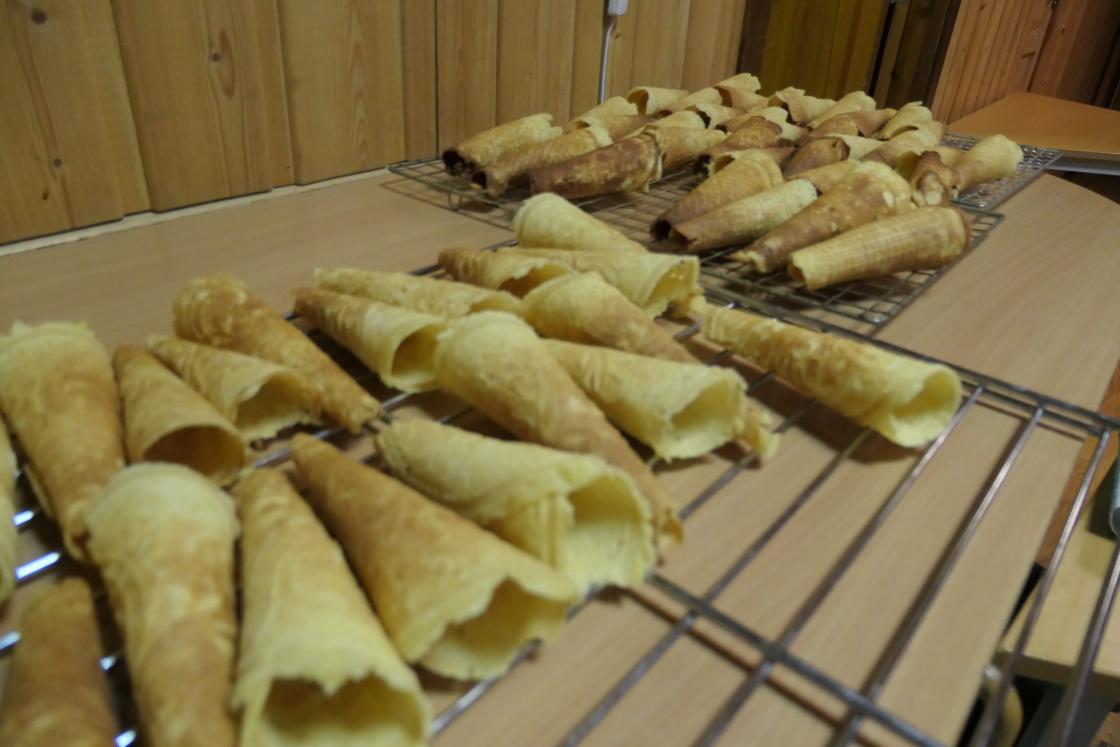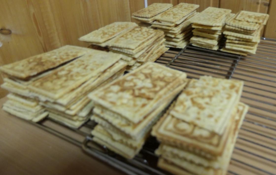 Lokalet vi nå bruker, har bare en stekeovn. Derfor måtte vi velge kakesorter som stekes i jern og i smult. På forhånd var det blitt laget 3 store deiger.