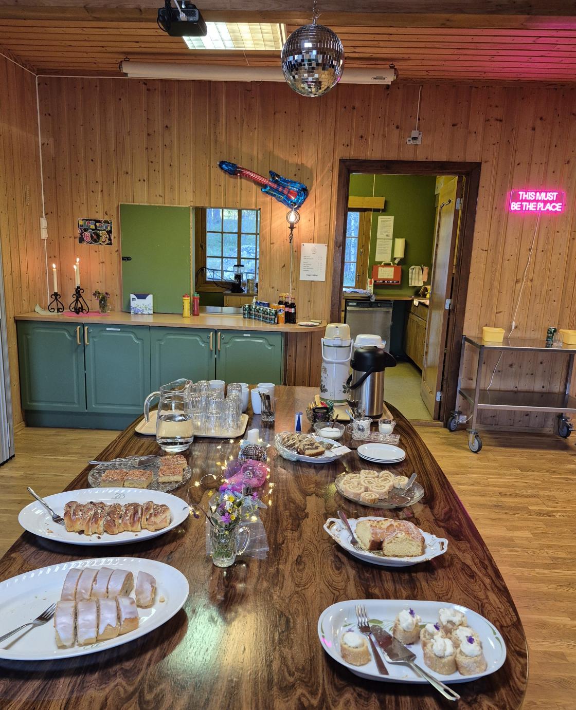 Bygdekvinnene hadde bakt 80-tallskaker, toscakake, marmor og sitronkake, rullekake med og uten krem og gjærkringle med melisglasur. Det var salg av pølser, brus, alkoholfritt øl og kaffe. Også cola på glassflasker,