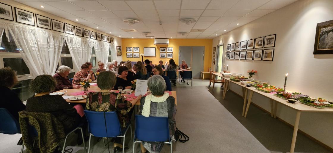 Alle medlemmene i laget var invitert til jubileet og de fleste møtte opp. Vi hadde besøk av lederen i Møre og Romsdal BKL, Grethe Uran. Hun hadde med seg nydelige blomster og kom med en fin hilsen til laget. Lederen i laget hadde et lite historisk tilbakeblikk over aktiviteten i alle disse årene. Det var allsang, quiz og underholdning. Monica Dahle Skiri og Astri Valle Hamre fremførte en utrolig artig sketsj. De er dyktige skuespillere, begge to. Ingunn Dahle Haukeberg leste morsomme små historier fra tidligere tider i bygdekvinnelaget.