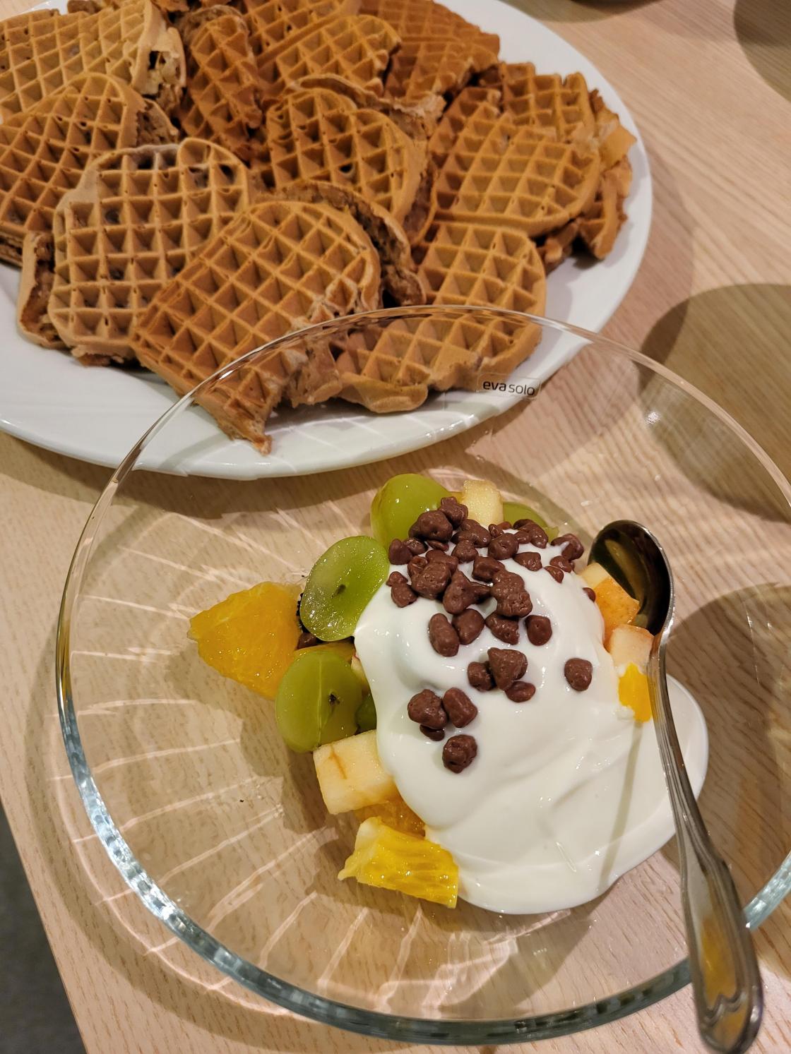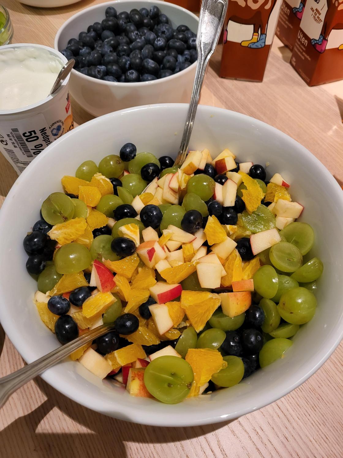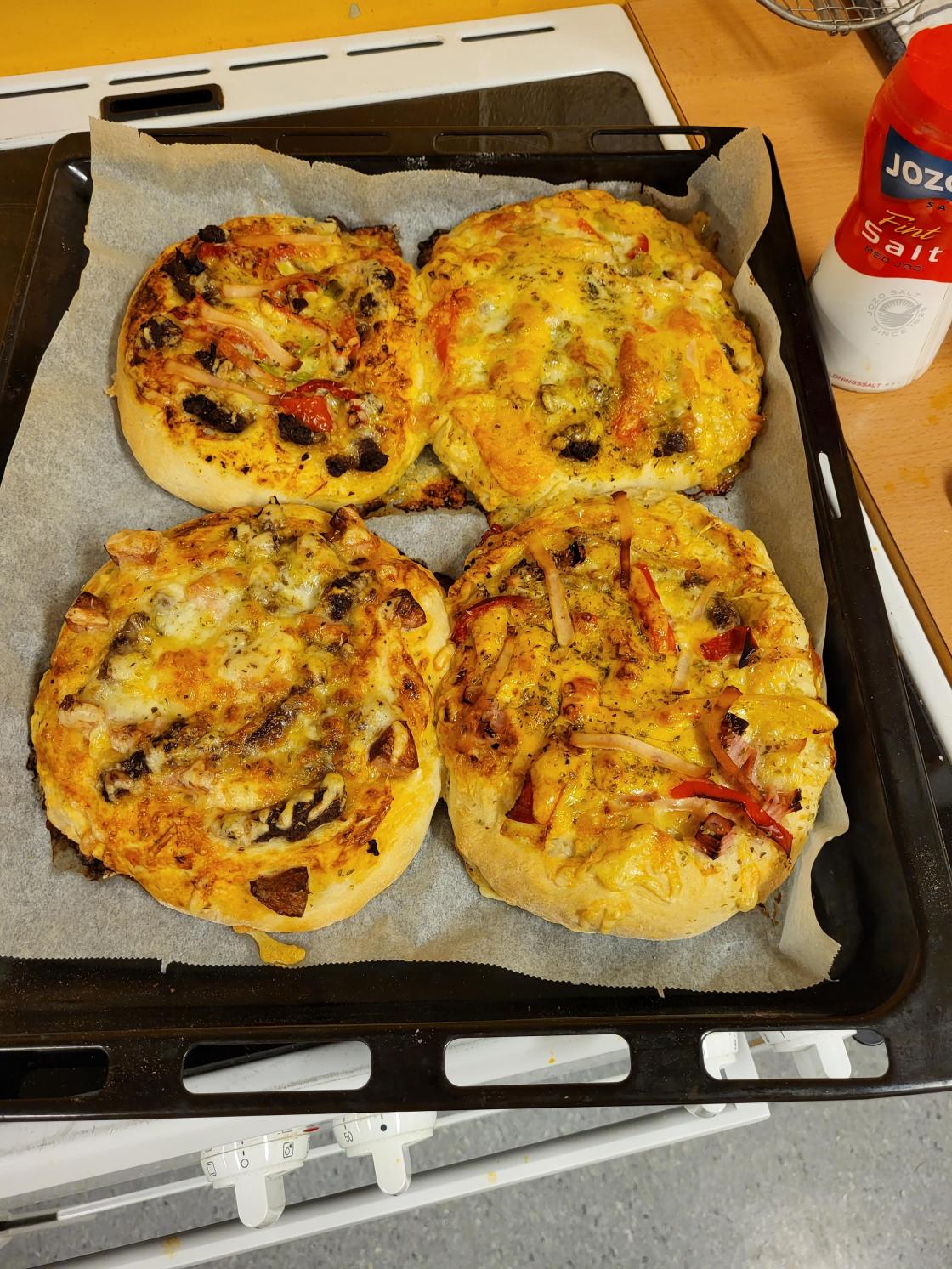 Vi lagde tomatsuppe, pizzasaus, grønnkålchips (godt til suppa), pizza med litt forskjellig på, Taco, smoothie, vafler av sjokolademelk og banan, som smakte godt til fruktsalaten! Bananen tror vi gjorde vaflene litt vanskelig å steke. Men artig å prøve.