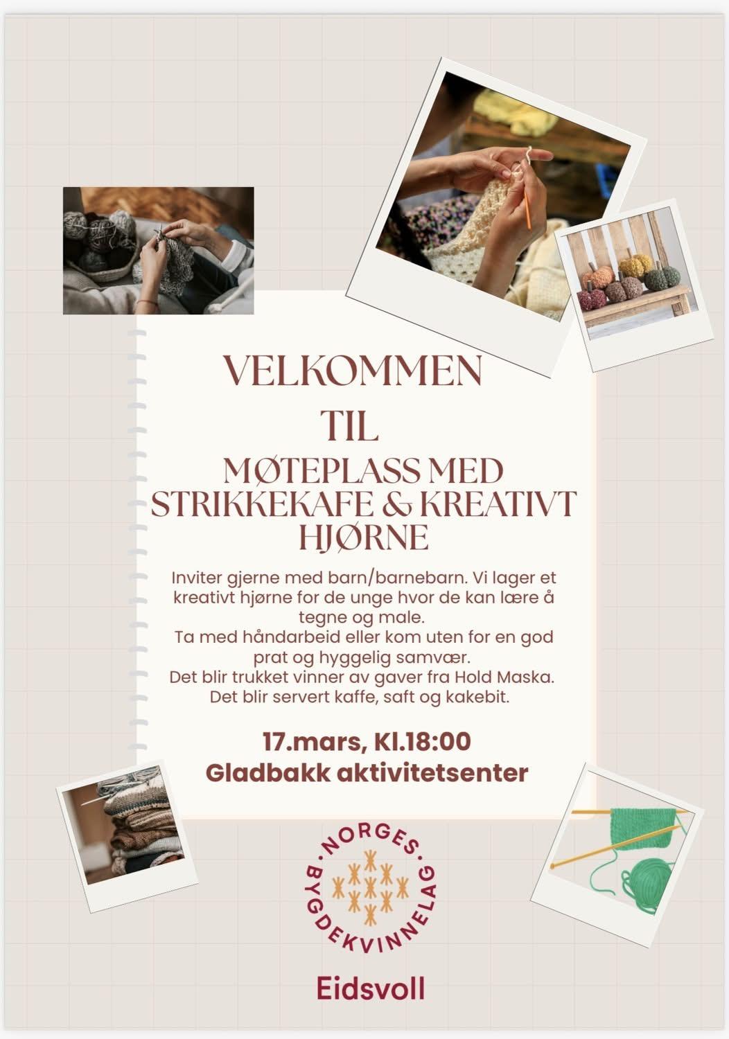 Velkommen til Gladbakk til en hyggelig kaffeprat. Ta gjerne med strikketøyet. Det blir trukket ut en overraskelse eller to fra Hold Maska.