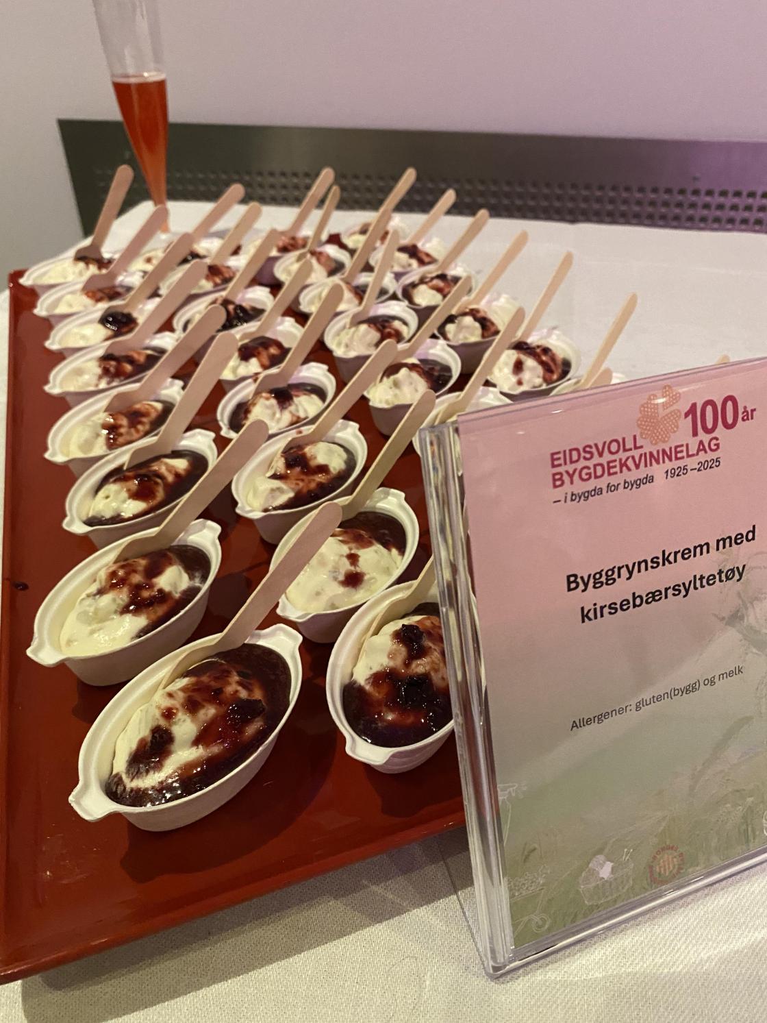 Eidsvoll Bygdekvinnelag har vært i og for bygda i 100 år.Det måtte feires med fest for hele bygda i Panorama kino. Jubileumskomiteen har jobbet i over 1 år, og du verden hva de hadde fått til. Alle fikk servert jubileumsdrikk ved ankomst, og gjestene kunne velge mellom 5 ulike smaksprøver av tradisjonskost i ny utgave. Dette var laget for anledningen av bygdekvinne Unni Weng.