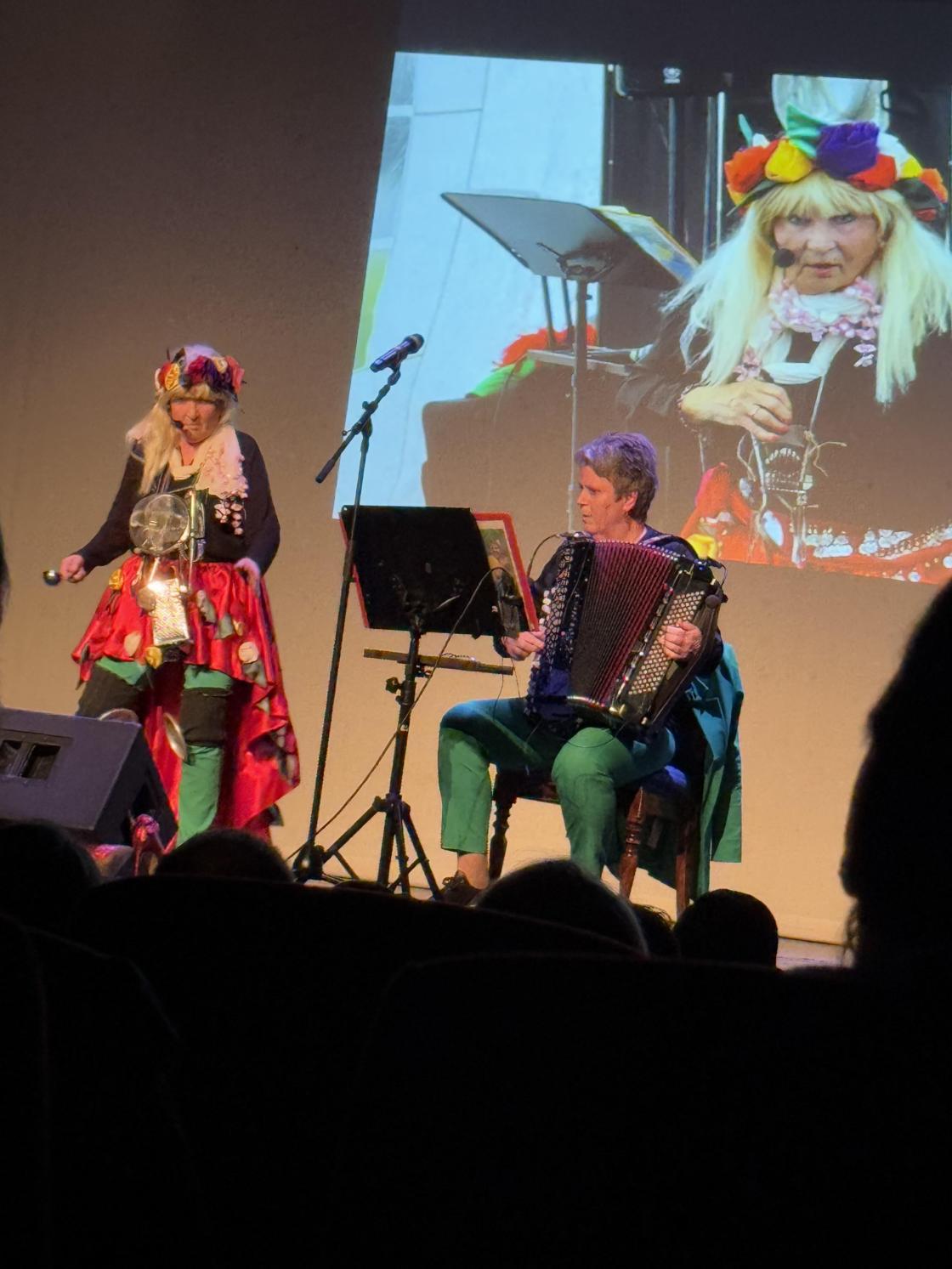 Med bilder og kommentarer fikk se glimt av og høre om aktiviteter i laget. May Klingenberg og Anita Nyhagen, som både Gærne jinter og Ruth og Randi, tok oss stadig inn i latterens verden med humoristisk underholdning og musikalske innslag. Det var taler fra ordfører Nina Kristengård, leder Marit H. Lund i Akershus distriktslag, Borghild Grav Strekerud fra Norges Bygdekvinnelag og Eidsvoll Landbruksforening ved Anders Klaseie og Audun Knutsen.