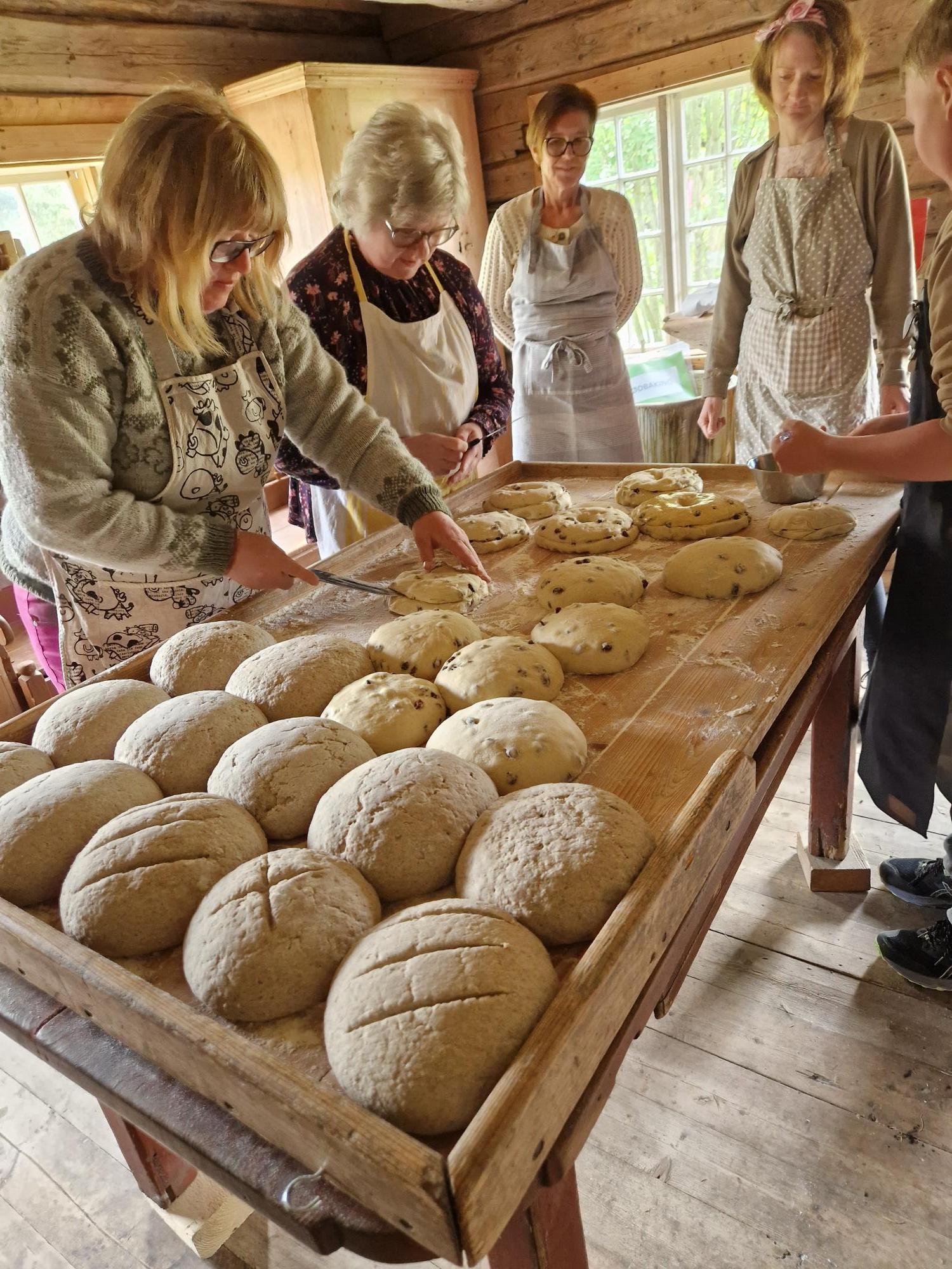 Eidsvoll Bygdekvinnelag har hatt kurs i tradisjonsrik bakst og deltakerne har lært om setting av deig, utbaking og steking i vedfyrt bakerovn. Yngste deltager var 12 år. Det ble en fin og lærerikt dag på Eidsvoll Bygdetun. Kursholder var Unni Weng, med god hjelp av Birgit Johnsrud. Norsk tradisjonsmatNorges BygdekvinnelagAkershus BygdekvinnelagEidsvoll BygdekvinnelagEidsvoll museum