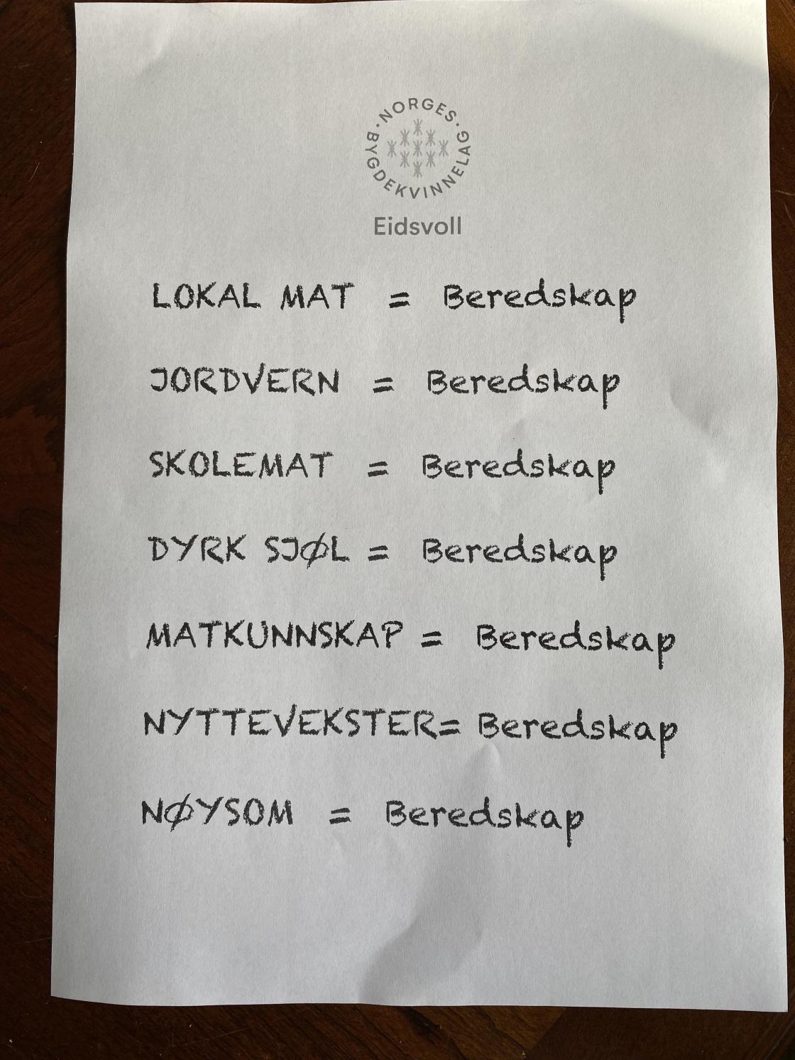 Vi frontet Beredskap med en utstilling : Lokal Mat er Beredskap, Smaken av Eidsvoll. Vi var så heldige å få besøk av Leder i Norges Bygdekvinnelag Anne Irene Myhr og vår generalsekretær