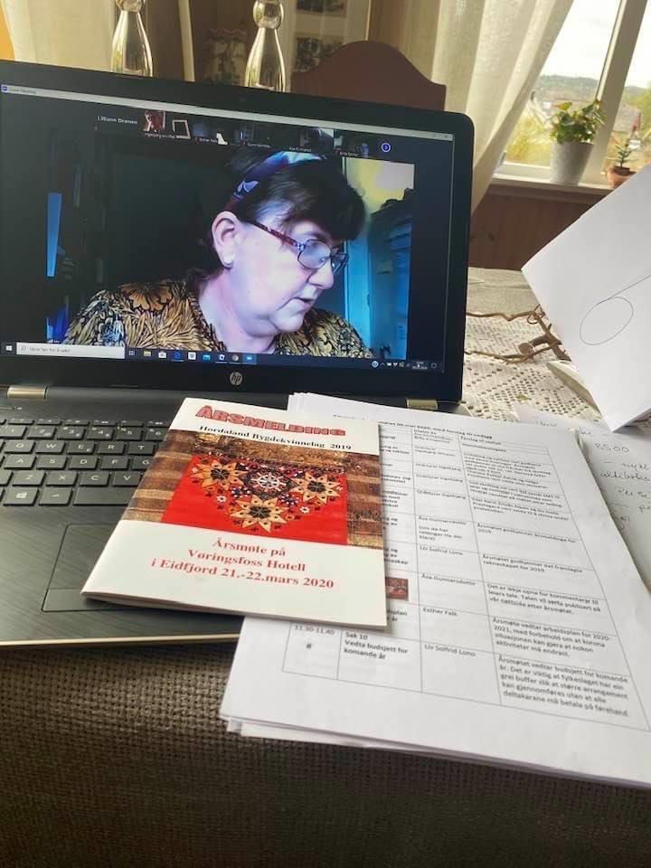 I år vart det ikkje vanlig årsmøte , det vart nettmøte. Slik vert det i desse koronatider. Møtet vart holdt heime hos LilliAnn Drønen, der også Vigdis Aarre Olsen var til stades.