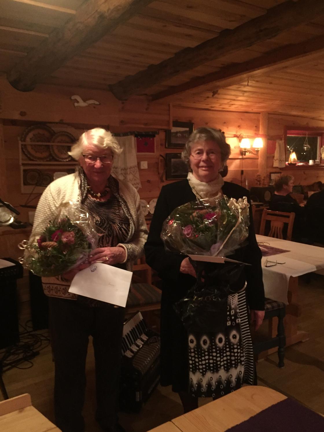 Hanna Årbø og Solveig Hamre Fitjar vart heidra for lang og tro tjeneste i Fitjar Bygdekvinnelag