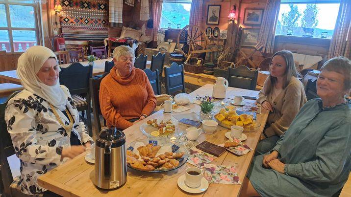 Over kaffikoppen, fekk me servert tre ulike små rettar frå tre damer me inviterte. To damer frå Syria og ei frå Ukraina. Det var spanande smakar av både søtt og salt. Tusen takk for at de ville vera med oss, me gler oss til me kan dela meir matkunnskap med dykk!