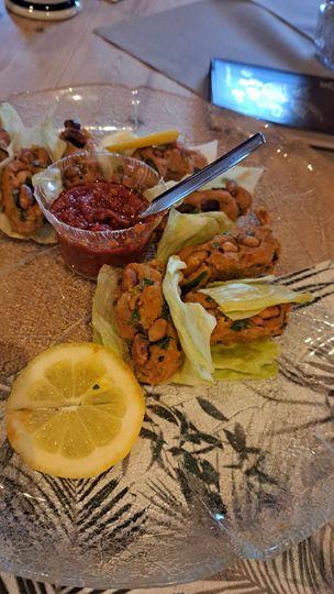 Før auksjonen verkeleg sette igang, fekk me smaka på nydeleg mat frå Syria og Ukraina.