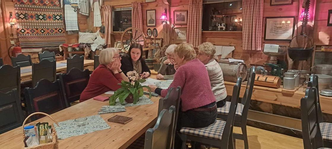 Bygdekvinnene samlast til treff med song og quiz måndag 3.mars i Peraløo