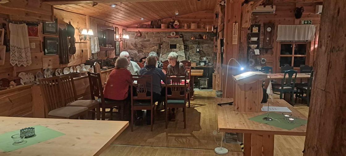 Innimellom tankeverksemda, tok me tenkepause og song litt frå songheftet styret laga til for kvelden. Tonane var høge og klåre, og ei lyst for øyra.
