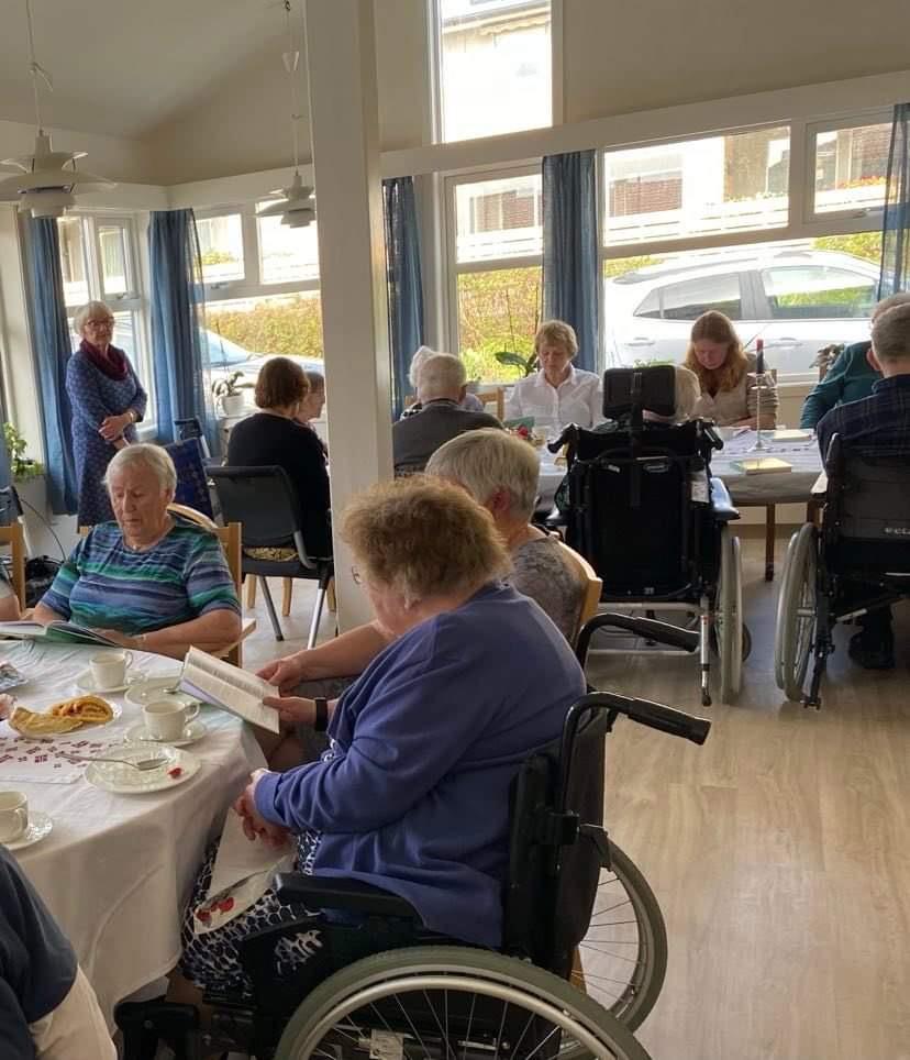 piano til songane.fin opplesing av Ingebjørg Sørfonn og Hanna Aarbø, Fleire av bebuarane minnast fredsdagane og fortalte levande til oss andre. Ellers koste dei seg med raud dravle og god heimebakst. Ei av bebuarane