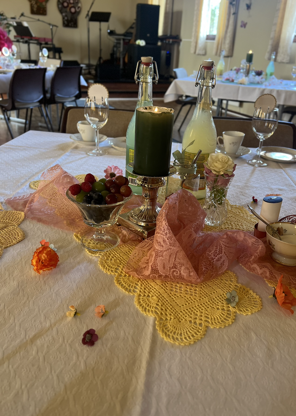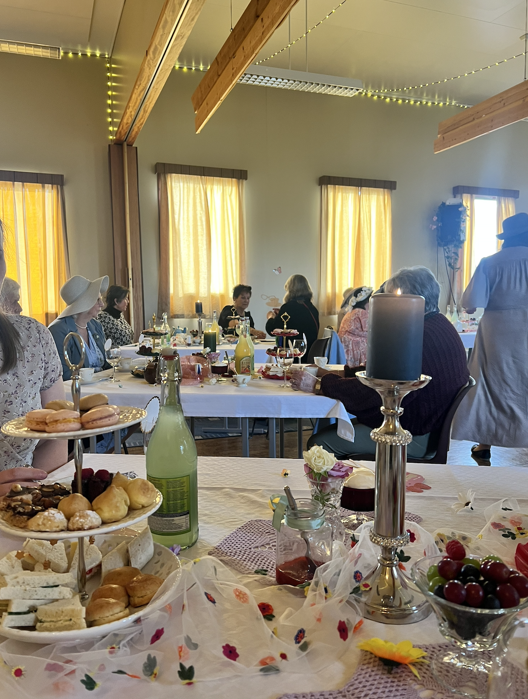 25 fesftine damer tok turen til Frostadheia bedehus da Frostadheia bygdekvinnelag arrangerte Afternoon Tea fredag 17. april 2026. De hadde hatter, små vesker, finsko, lekre kjoler, kreativ hodepynt, nåler og brosjer. Dette var i virkelig god Afternoon Tea ånd.