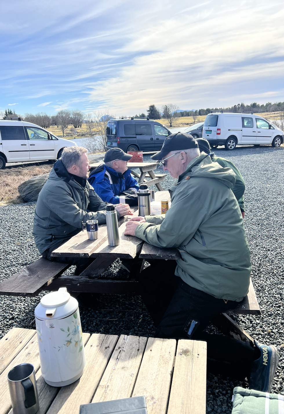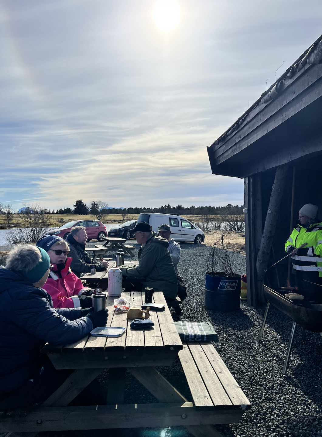 Å bare legge ut en melding på Facebook søndag formiddag, for å se at folk liker tanken og kommer...det er jo kjempekoselig. Vi ble 10 stykker. Vi drakk kaffe, hadde kaffebrød, grillet pølser med lompe. En kjempefin stund ved Gåsvatnet :-)