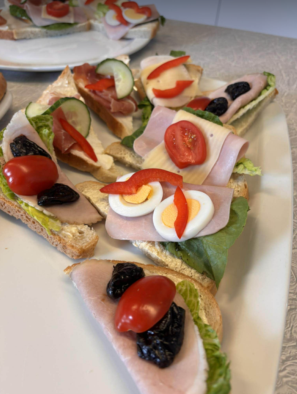 Vi serverte kveldsmat, sang, allsang, quiz og trivelig prat.