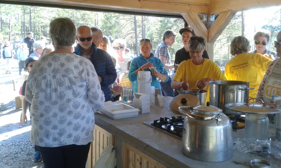 Bygdekvinnelaget saman med Hayad frå Oss kvinner imellom servera mat i utekjøkkenet. Hayad hadde laga over 150 Samosas og Bitte, Berit og Gunn hadde koka saftsuppe. Med over 400 folk i Hamaren denne kvelden gjekk vi diverre tome for mat før alle hadde fått smaka, men ingen sure miner av den grunn.