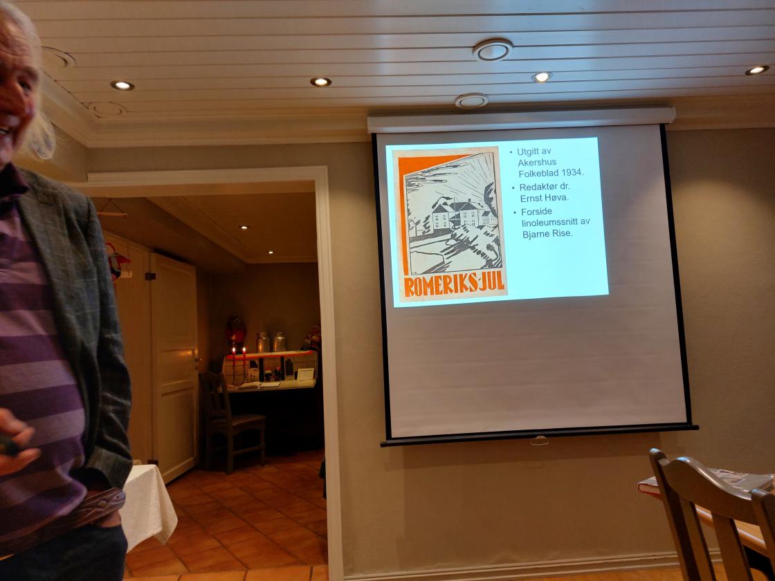 Brenne viste eksempler på julehefter som har blitt utgitt på Romerike. Romeriks-jul kom i 1934. Jul i Nes har vært utgitt i mange år.